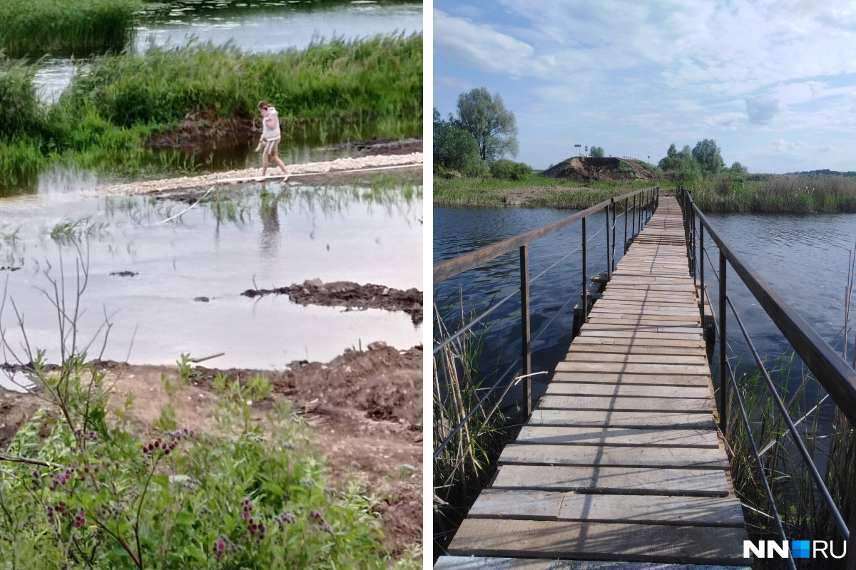 В Нижегородской области жителям двух районов затопило подход к временному мосту. До переправы люди добираются почти вплавь