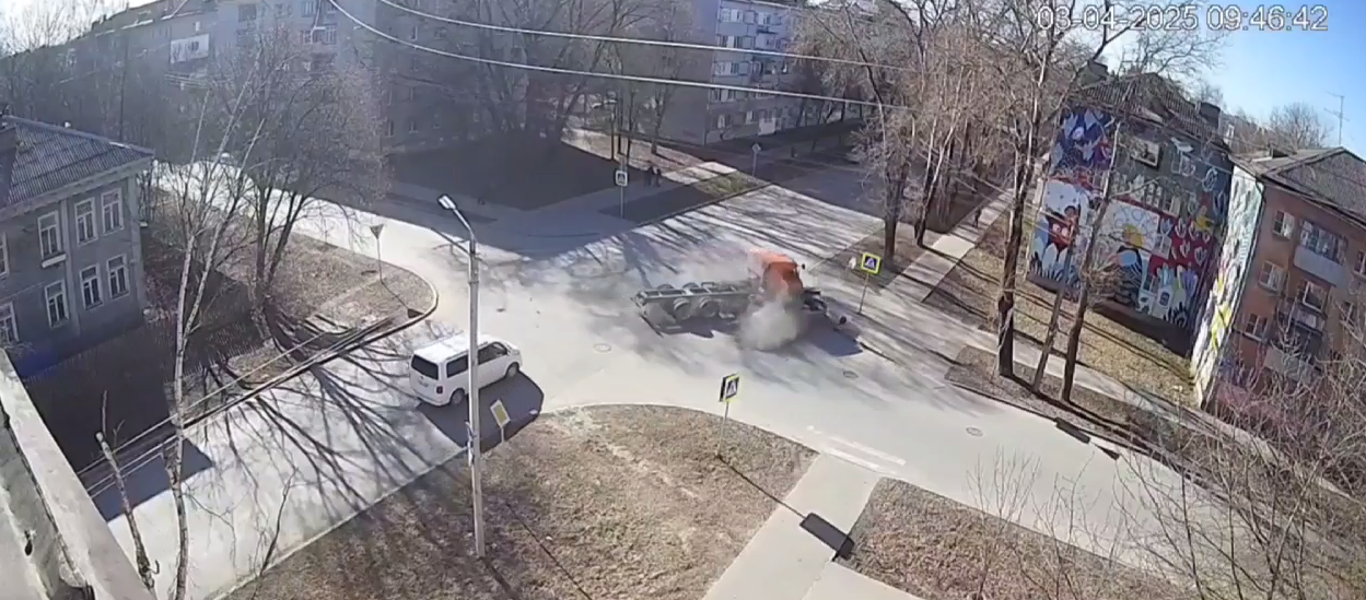 Авария случилась сегодня в 9:45. Произошедшее попало в объектив камеры наружного наблюдения.