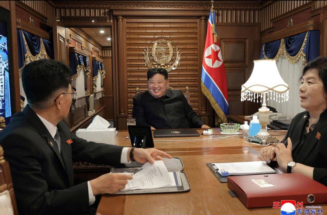Товарищ Ким Чен Ын в своем модном бронепоезде едет на парад в Пекин после посещения ракетных объектов на севере КНДР. Настроение бодрое.