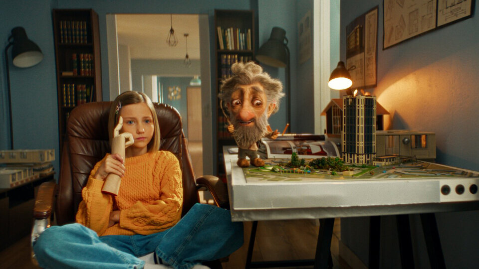 В новой киноверсии у благообразной Наташи (София Петрова) тоже есть хорошенькая мама-блондинка (Женя Малахова), которая вроде бы способна допустить элементы метафизики в домашнем обиходе, пусть даже в шутку. В прологе Наташина семья приезжает на старую дачу, где когда-то проводил каникулы папа Андрей (Марк Богатырёв). Увидев запустение в доме, мама игриво предлагает: «Можем домового завести». Но папа твердо встает на рациональные позитивистские позиции: «Домовых не бывает», после чего семейное общение принимает совсем унылый оборот со стандартными диалогами. Так, когда папа задает Наташе сакраментальный вопрос: «Опять в телефоне залипла?», мама, если вдруг до кого-то не дошло, старательно переводит Наташе папины слова: «Папе не нравится, что ты висишь в телефоне». А потом настает очередь папы переводить дочке предложение мамы поехать вместе со всей семьей «на конференцию в Питер» и развеяться.