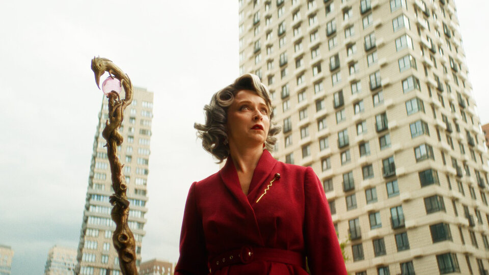 Но, к счастью, маму удается отправить на конференцию в одиночестве, и до самого конца она не путается под ногами, а папе приходится вспомнить, что маленьким Андрюшкой он тоже дружил с домовенком Кузей и спрятал его волшебный сундучок в винтажной жестяной коробке из-под печенья. Теперь за сундучком, главным магическим артефактом, охотится Баба-яга (Екатерина Стулова), проникающая в человеческий мир через специальный портал — пыльное зеркало на старой даче. На хрупкие плечи Яги, орудующей волшебной метлой с изящным набалдашником, ложится основной экшен и эксцентрическая клоунада, которая достигает апогея при встрече с сотрудниками ДПС ГИБДД (Олег Комаров и Алексей Гаврилов). Те пытаются остановить на трассе горбатый запорожец Яги (в сказочной терминологии, которую по мере сил стараются вклеить сценаристы, экзотическое транспортное средство называется «демон четырехколесный»).