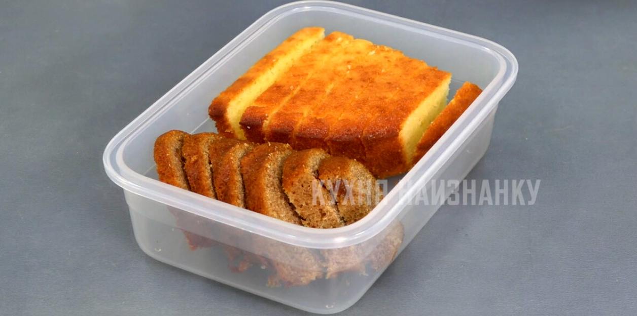 Замораживаю и, когда нужно, достаю из контейнера. Через несколько минут хлеб уже можно есть или добавить в котлеты, например. Или десерт приготовить со сметанкой. Рецептом такого десерта делилась ЗДЕСЬ.