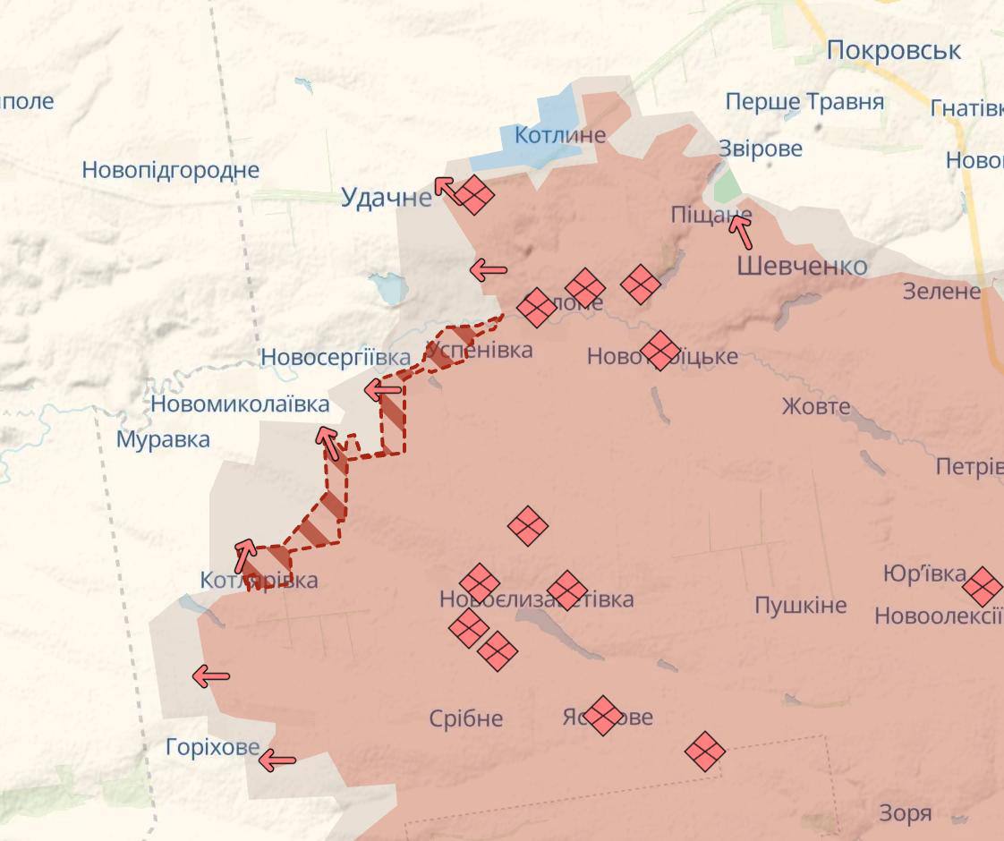 🫡Армия РФ снова продвинулась у границы с Днепропетровской областью сразу на нескольких участках, от Успеновки до Котляровки