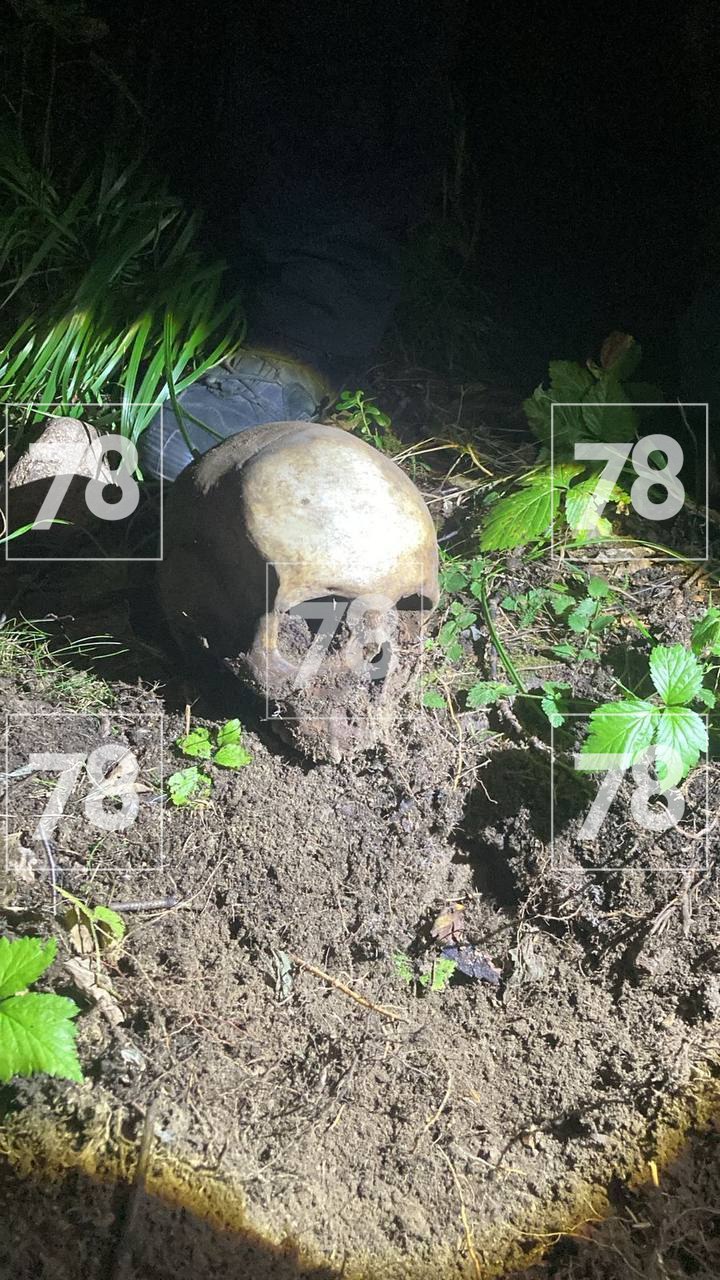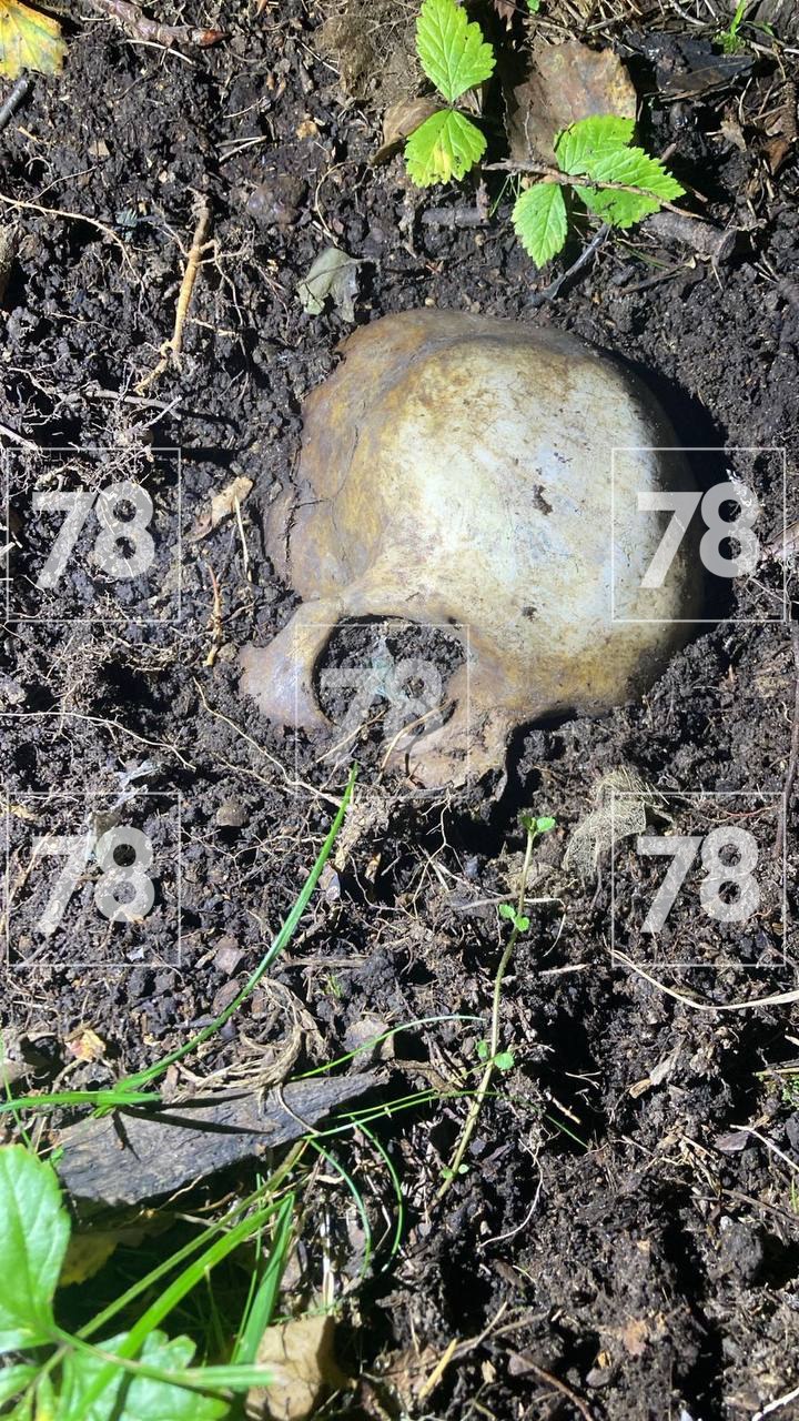 Взгляд смерти из земли перепугал жителя посёлка Янино-1 — мужчина шёл в лесном массиве у Голландской улицы и заметил прикопанный череп.