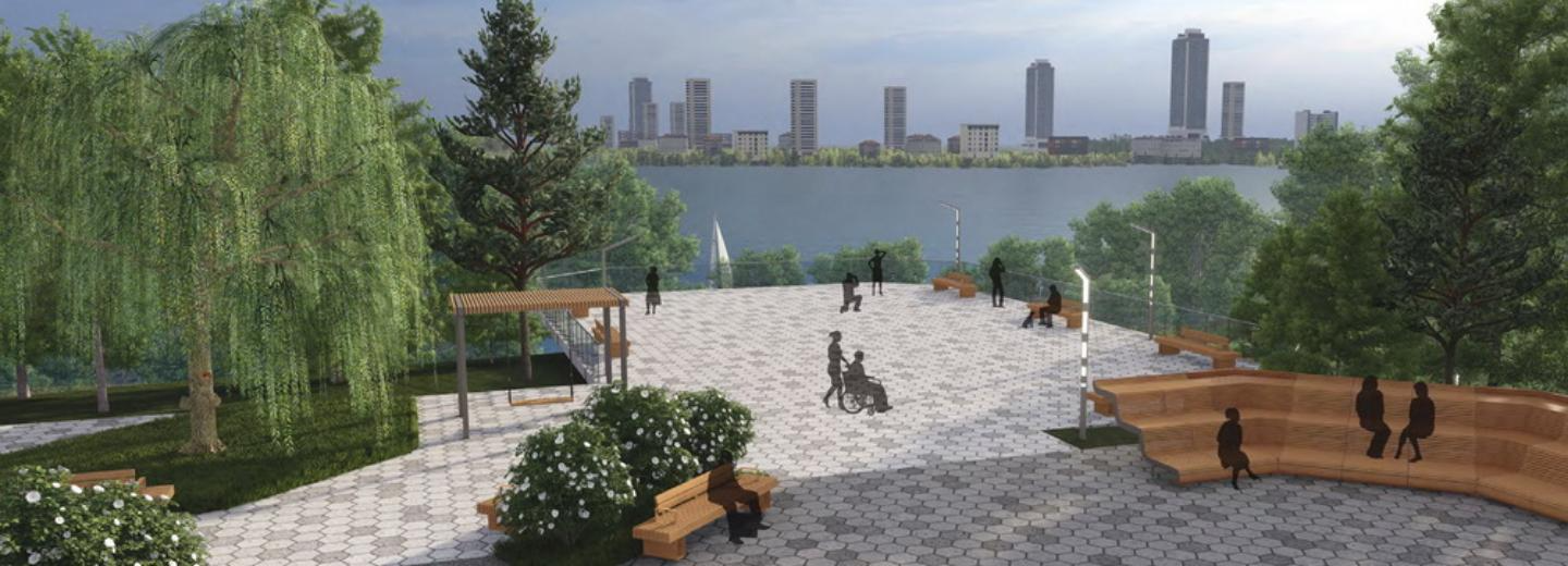 Зону с пристанью речного трамвайчика хотят разделить на две части: верхнюю — вдоль проезжей части улицы Саввы Кожевникова и нижнюю — с песчаным берегом Оби. Авторы дизайн-проекта предложили обустроить пляж, проложить пешеходные и велосипедные дорожки, установить детский игровой городок, турники, деревянные скамейки и шезлонги, а также оборудовать смотровую площадку.