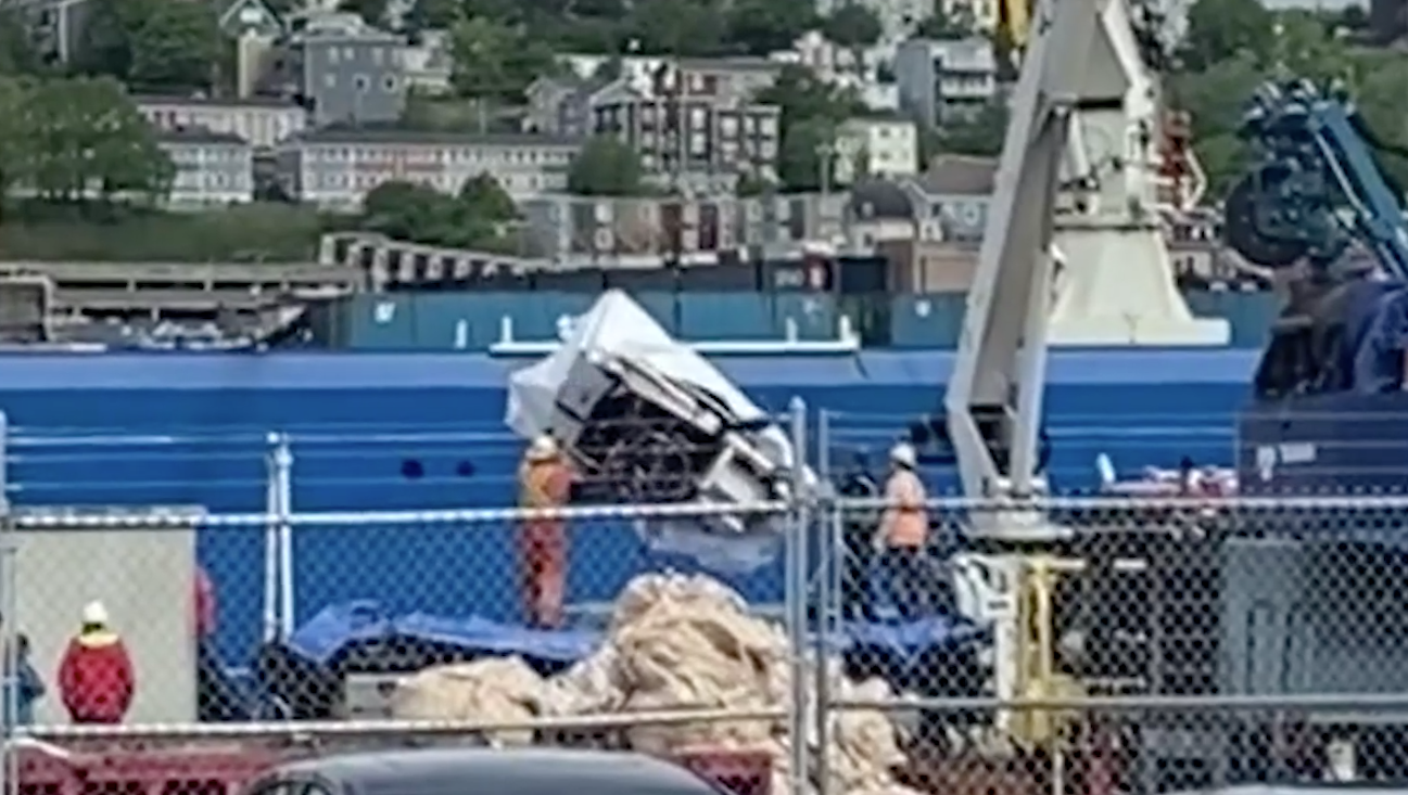 Всё, что осталось от батискафа "Титан", подняли на поверхность. Видео © HeatherMGillis / Twitter