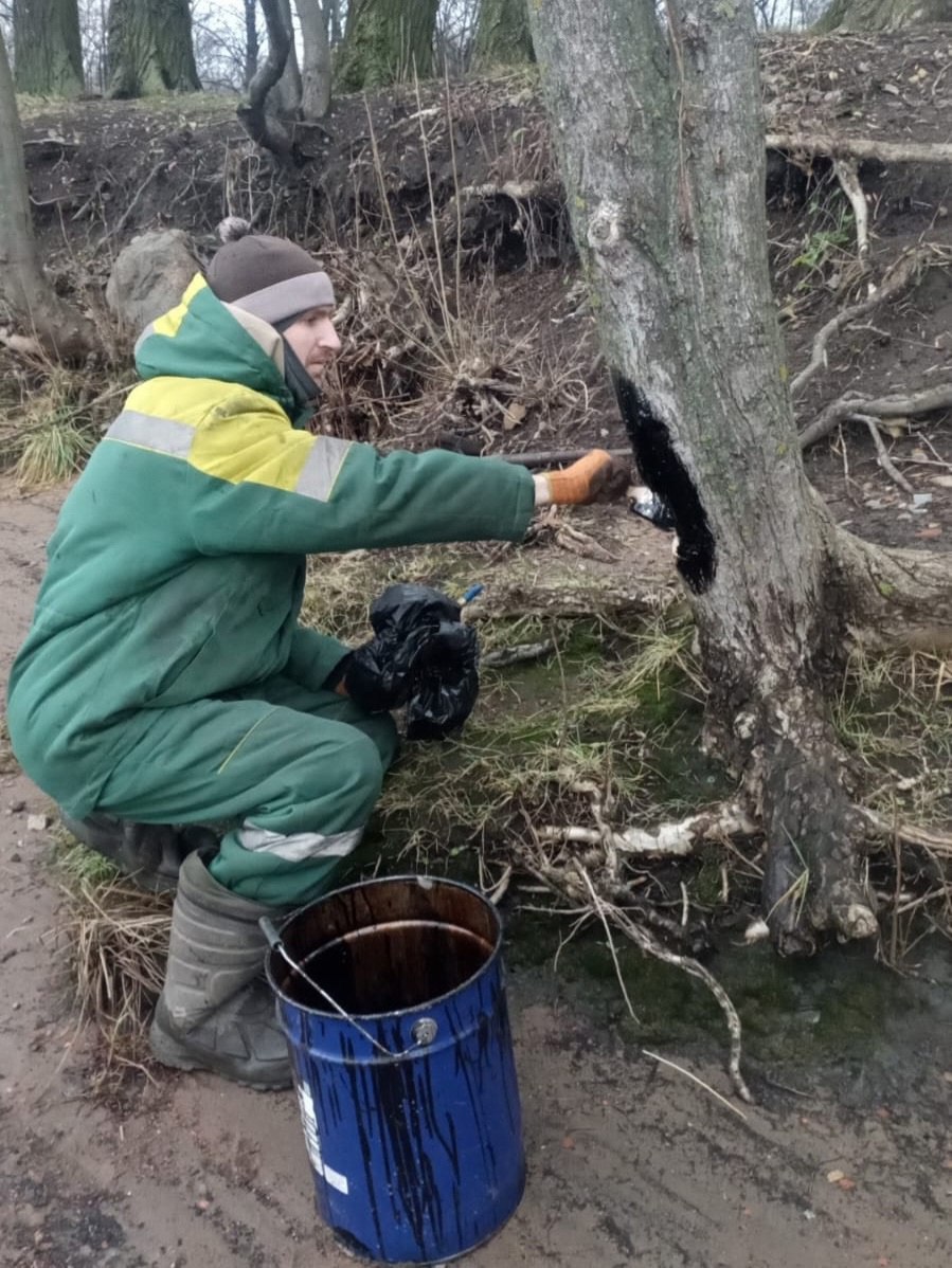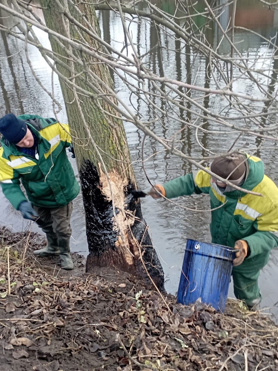 Повреждённые участки обрабатывают специальным составом чёрного цвета. А чтобы бобры больше не «вандалили», стволы обносят проволочной изгородью или цепью, рассказали в Комитете по благоустройству.