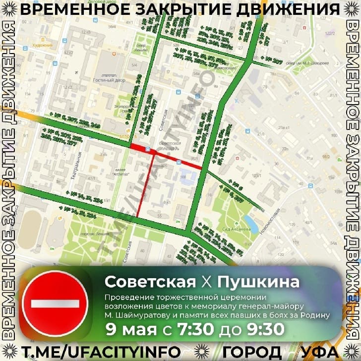 9 мая в столице Башкирии ограничат движение по ключевым улицам в связи с проведением праздничных мероприятий, посвящённых 80-летию Победы. Об этом сообщил Минтранс республики.