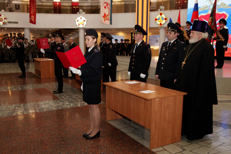 Молодые полицейские перед лицом старших товарищей и родителей торжественно обещали стоять на защите законных прав и свобод граждан, безупречно исполнять свой служебный долг, быть верными своей профессии и не щадить сил в борьбе с преступностью.