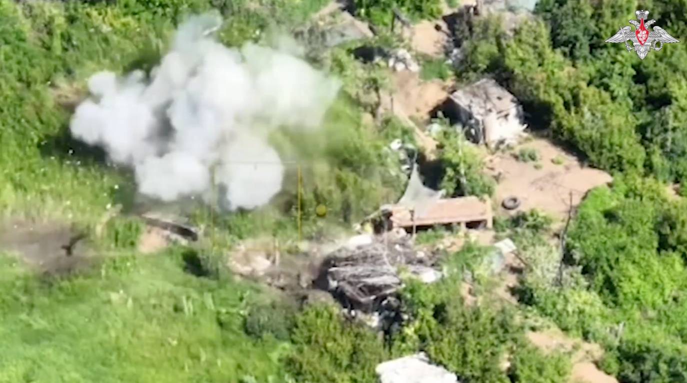 Минобороны России показало кадры удара беспилотниками по опорному пункту украинских войск. Это произошло на Запорожском направлении, сообщается в телеграм-канале ведомства.