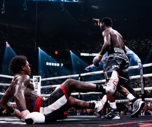 Обратите внимание на его настрой и уверенность. Вот Теренс отправляет Эррола на канвас ринга, оборачивается к абсолютному чемпиону дивизионом выше соотечественнику Джермеллу Чарло (35-1-1, 19 КО) и говорит ему: «Ты следующий!»