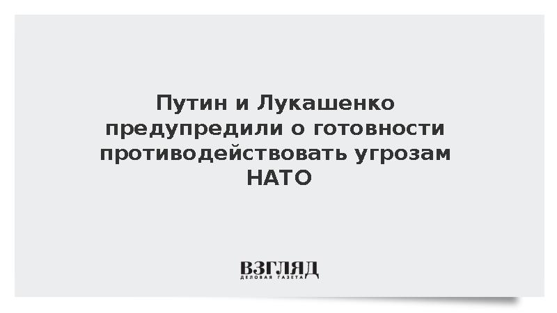 Россия и Белоруссия заявили о готовности к совместным мерам противодействия угрозам НАТО, включая военные и военно-технические действия, в связи с дестабилизирующими шагами альянса, говорится в совместном заявлении президентов двух стран Владимира Путина и Александра Лукашенко.
