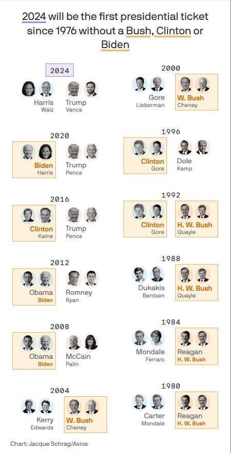 На выборах США с 1976 года присутствует представитель семьи Буша, Клинтона и Байдена. Теперь место Байдена займет его представитель Камала Харрис. Это похоже на олигополию.