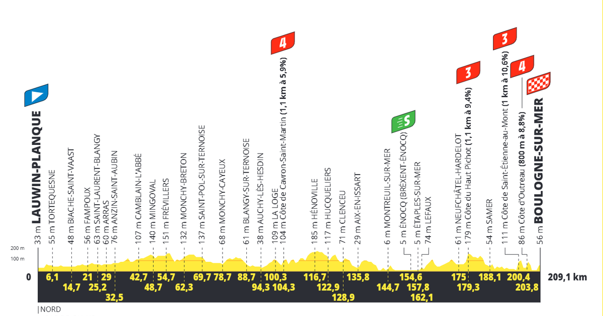 Le profil de l’étape : Lauwin-Planque - Boulogne sur Mer (209,56 km)