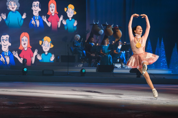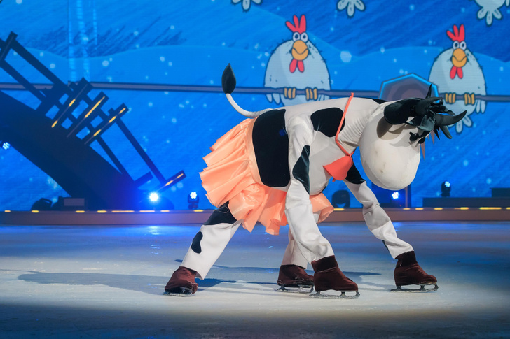 Зрители гадали, кто же станет той самой неуклюжей Коровой, и в какой-то момент появились предположения, что эту роль отдали Медведевой. Но нет. «Когда было заявлено о спектакле и стало понятно, что, вероятно, я буду коровой на льду, у меня возник небольшой диссонанс, мол, ну как, я — корова? А потом я просто поняла, что ко мне этот эпитет как оскорбление не имеет никакого отношения. Потому что, если бы я была коровой на льду, то два чемпионата мира бы не выиграла, — улыбается Женя. — Тут уже встает вопрос чувства юмора и здорового отношения к себе. Какой человек испугается такого костюма? Тот, кто себя с ним ассоциирует или себя недооценивает. У меня с самооценкой все в порядке. Поэтому по сюжету я — мечта коровы Мули. Она видит мое выступление по телевизору и хочет научиться кататься так же».
