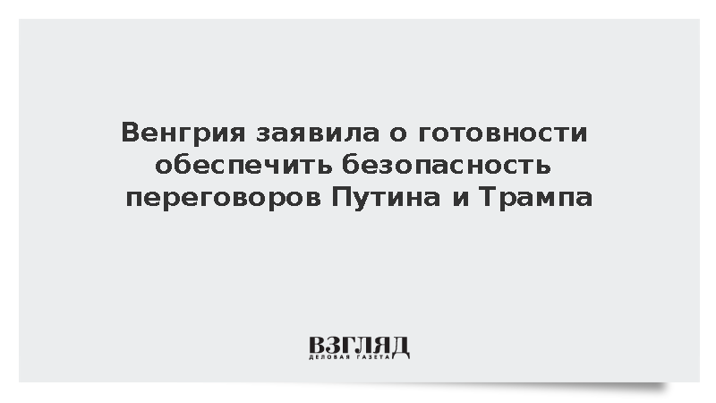Венгрия готова обеспечить все необходимые условия для безопасного проведения переговоров между президентами России и США, передает РИА «Новости».