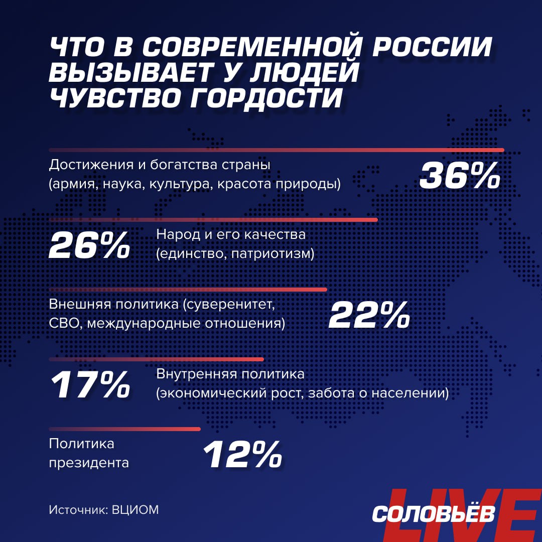 ВЦИОМ: большинство россиян уверены, что у них есть повод для гордости в современной России (71%).