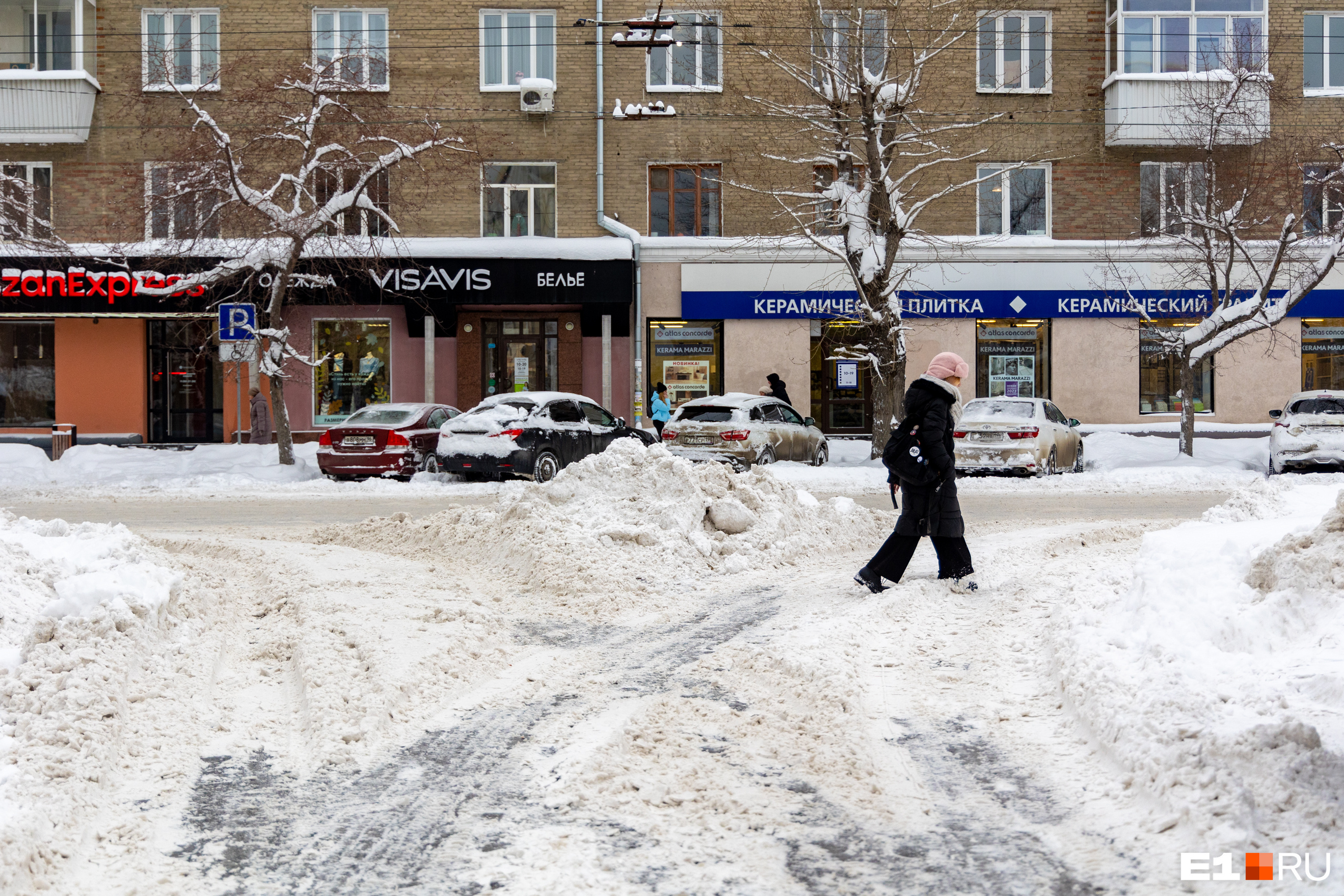 В Екатеринбурге завершился аномальный снегопад, а вот его последствия еще разгребать и разгребать — в буквальном смысле слова. Фотограф E1.RU Владислав Лоншаков прогулялся по заснеженным улицам города, где местами, кажется, об уборке еще ничего не слышали.