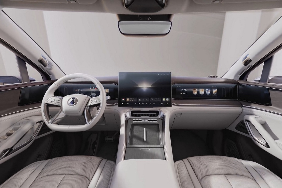 Что же касается дизайна экстерьера, то у Denza N9 внушительный передний бампер, выдвижные ручки дверей и раздельные задние фонари, которые при этом растянуты практически на всю ширину машины. Для кроссовера заявлены лидар, выдвижные боковые подножки и буксировочный крюк. Вместо привычных наружных зеркал можно будет заказать камеры.