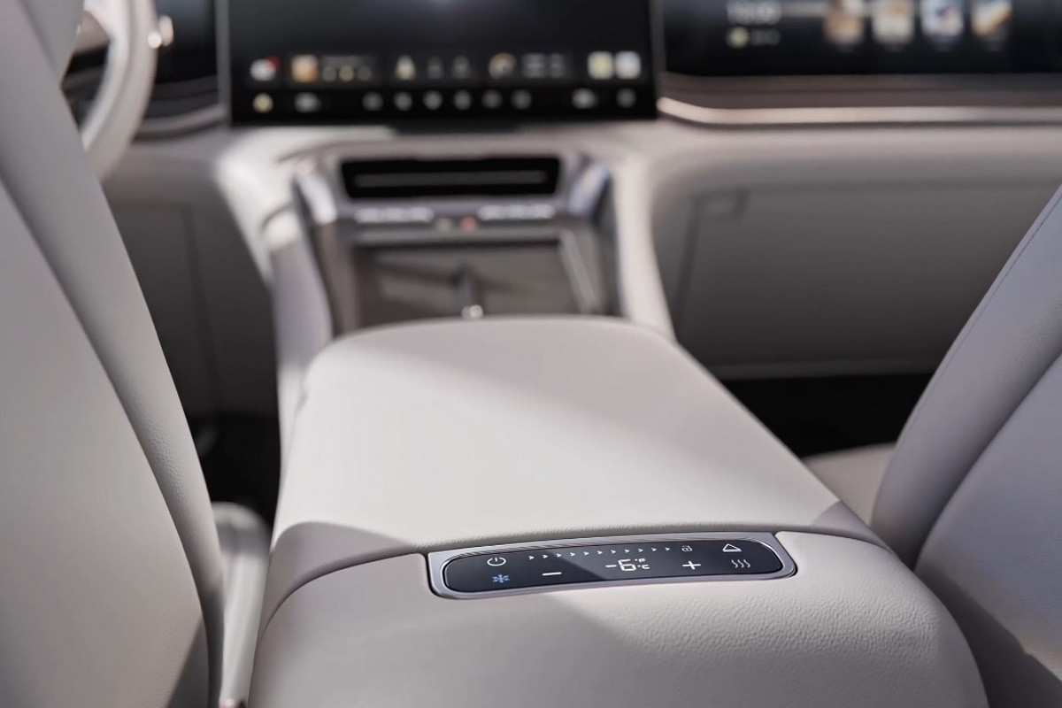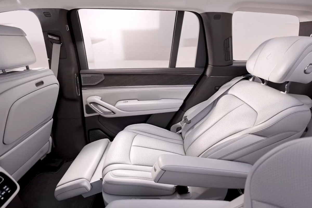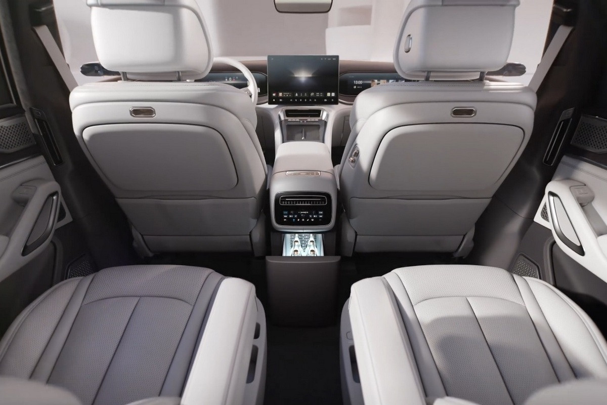 Под боксом-подлокотником между передними сиденьями спрятан выдвижной холодильник, его можно открыть голосом. Кресла второго ряда – с подставками для ног. Спинки первого и второго рядов откидываются назад, образуя спальные места. Разумеется, сиденья имеют вентиляцию, подогрев и массажер.