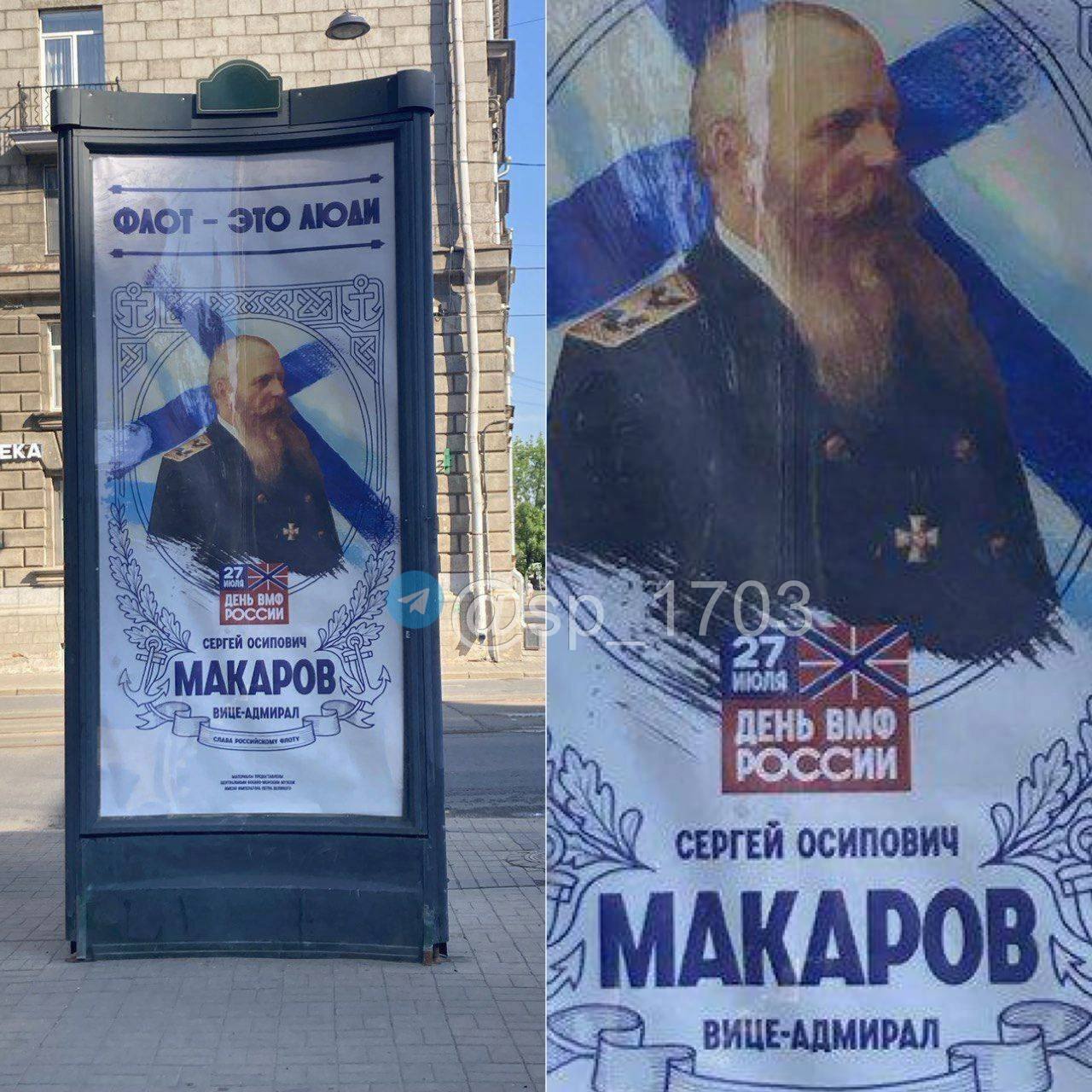Ко Дню Военно-морского флота в Петербурге вывесили баннер с портретом легендарного вице-адмирала Степана Макарова, но подписали его как Сергей.