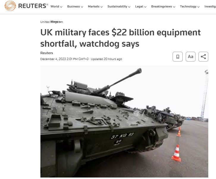 Reuters: британские военные столкнулись с нехваткой оборудования на 22 миллиарда долларов, сообщает наблюдательный орган