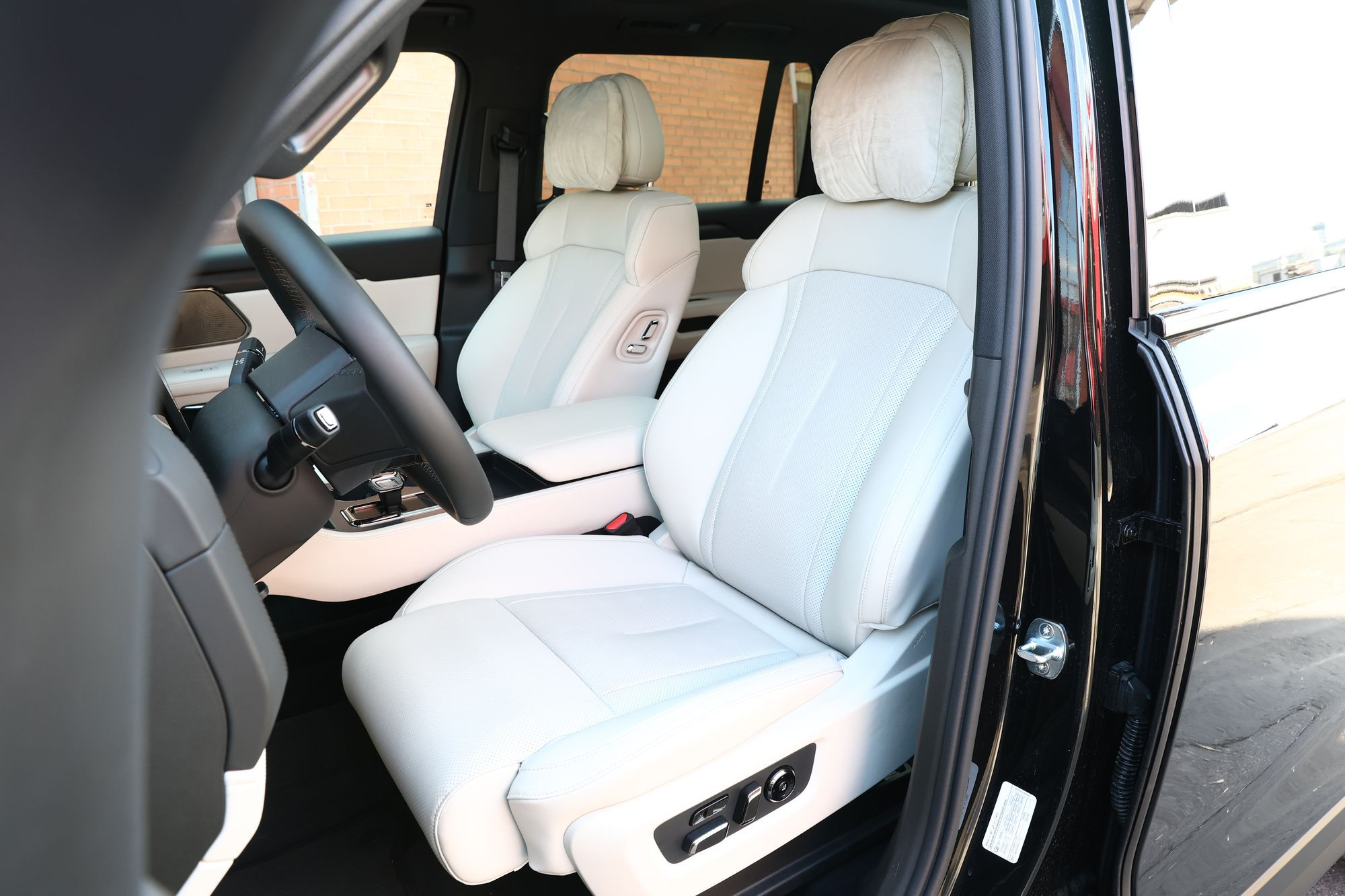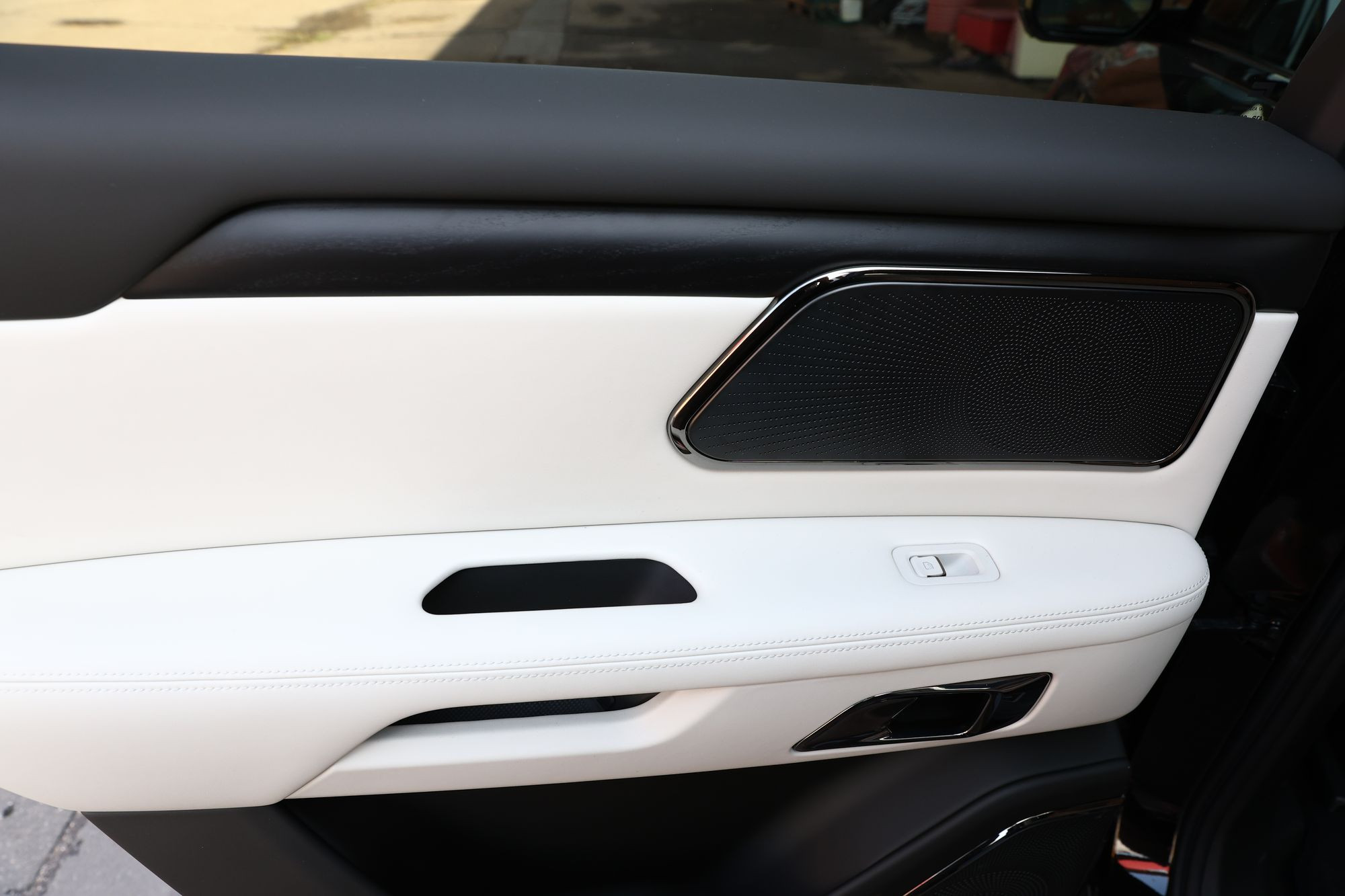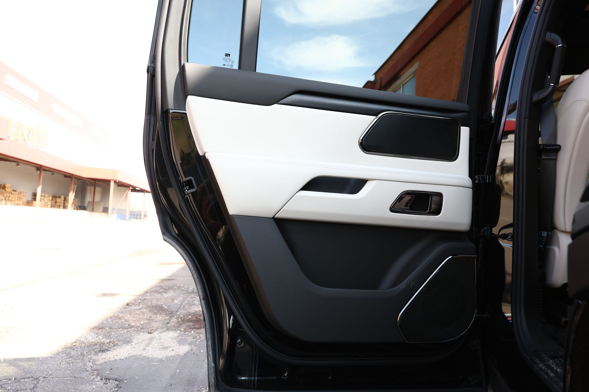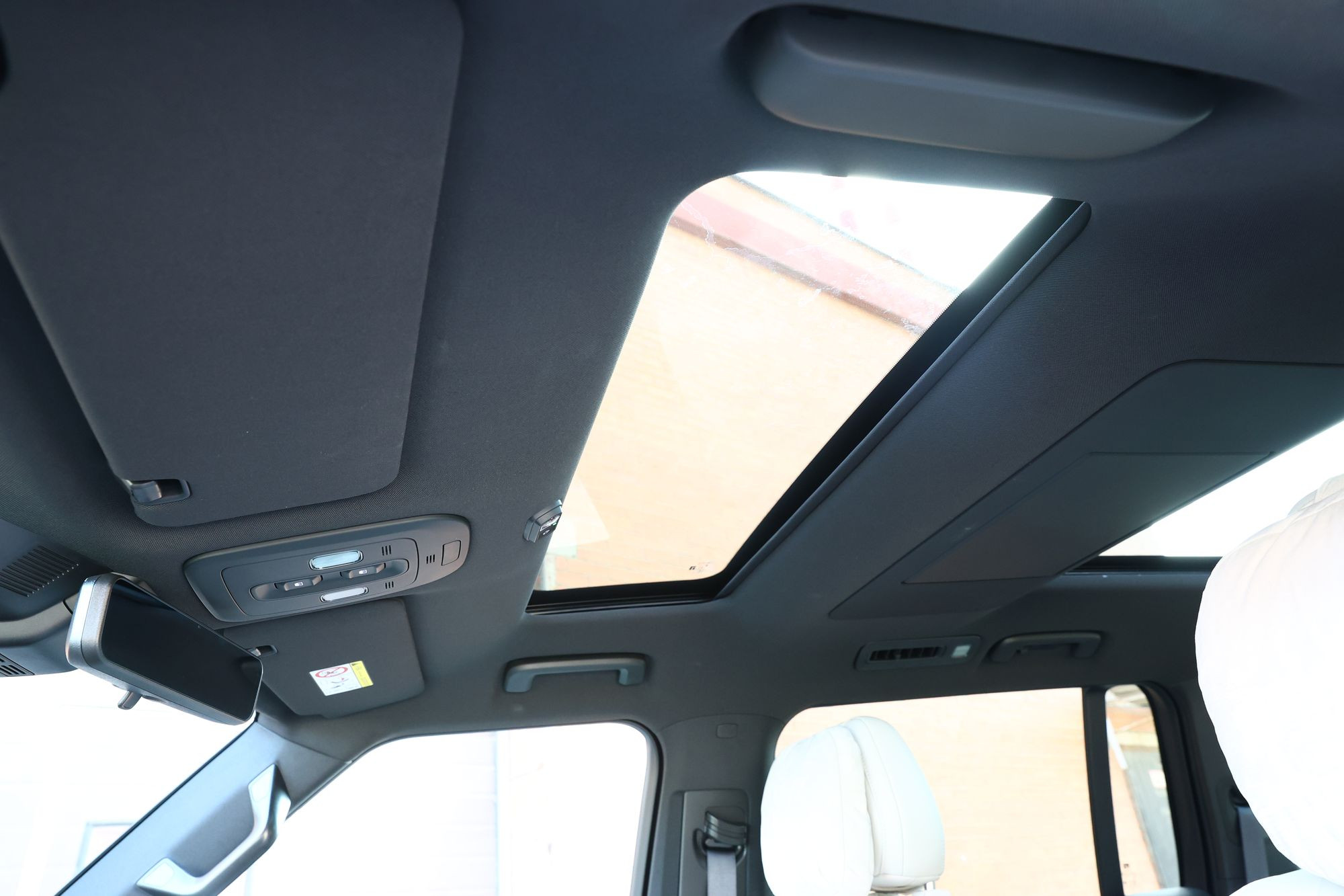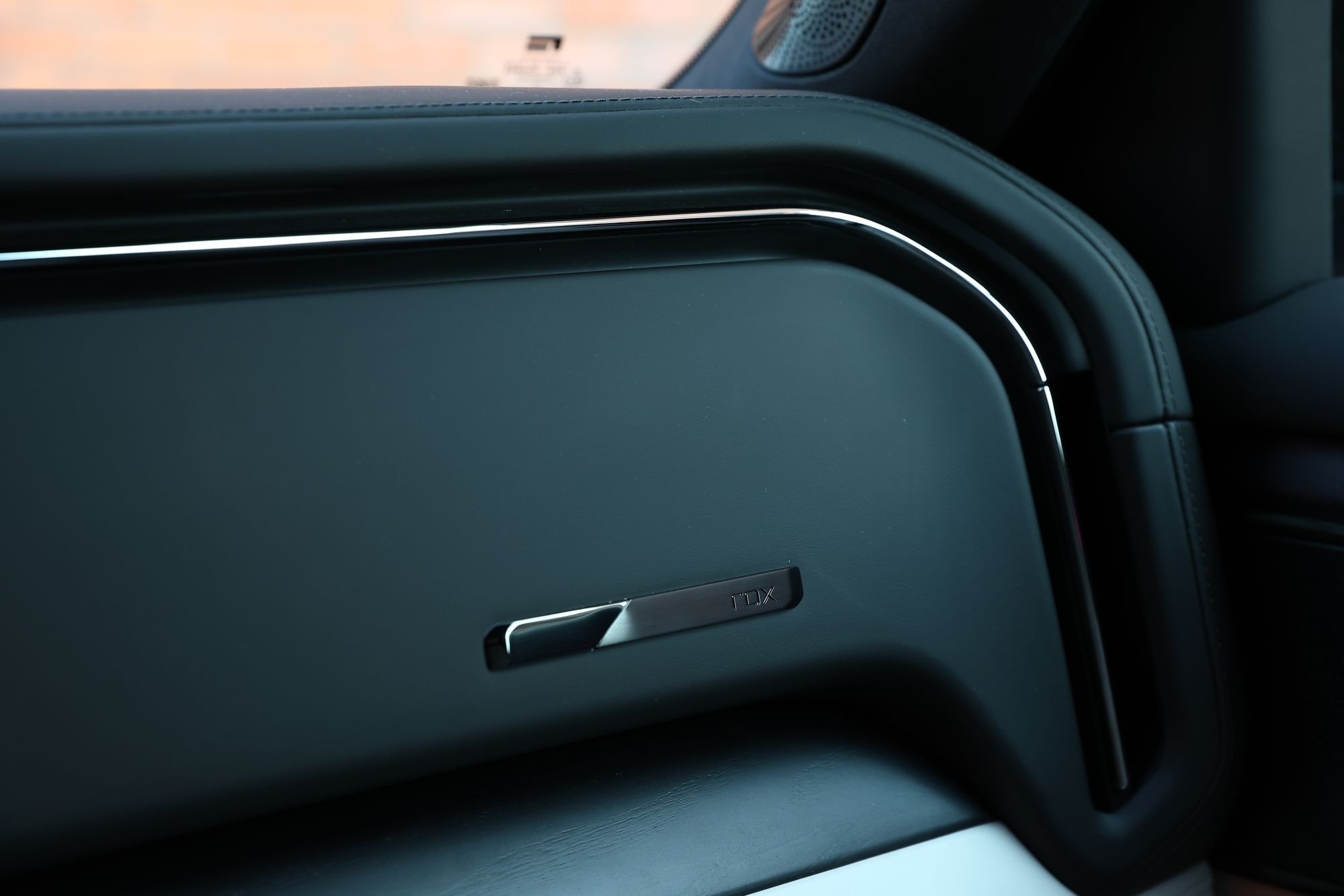К водительскому креслу не придраться – здесь есть регулировки и угла наклона подушки, и её длины. У переднего пассажира, как водится, настроек минимум, не говоря уже про отсутствие оттоманки. Посадка подчёркнуто вертикальная, прямо как на Range Rover. Панель приборов – 12,3-дюймовый экран, у которого, по сути, никаких настроек нет. Посередине тут, конечно же, нарисованы машинка и анимированная дорога, а сверху – небольшие цифры спидометра.