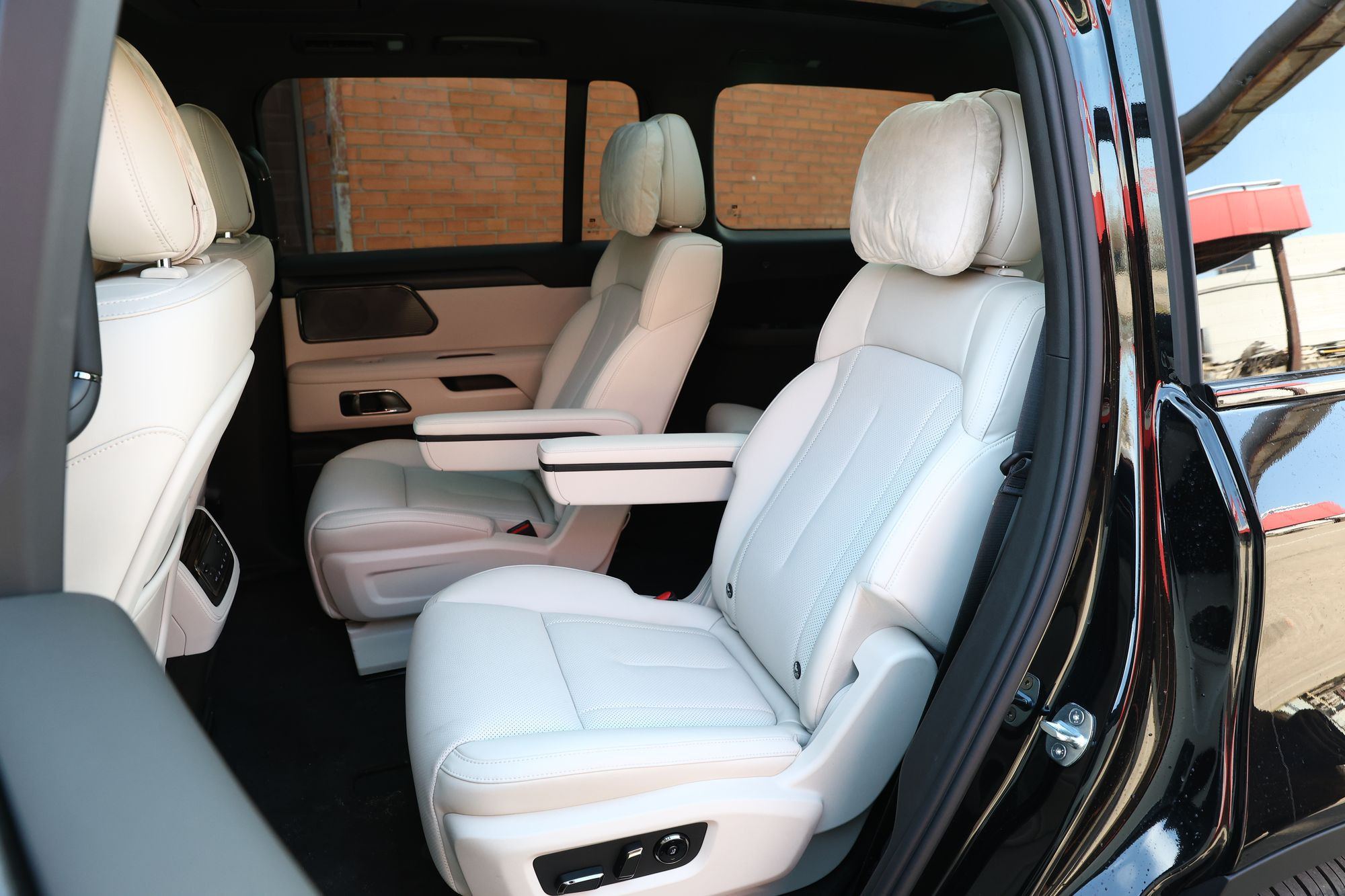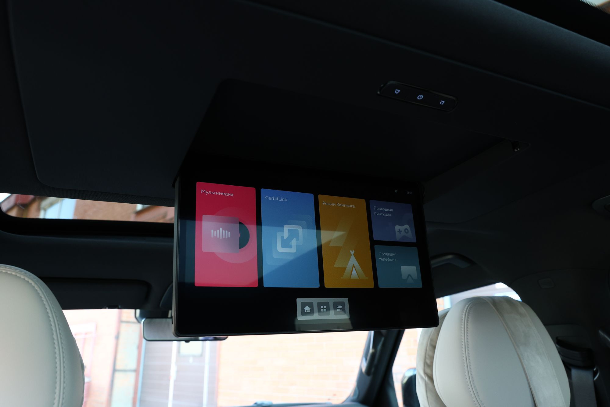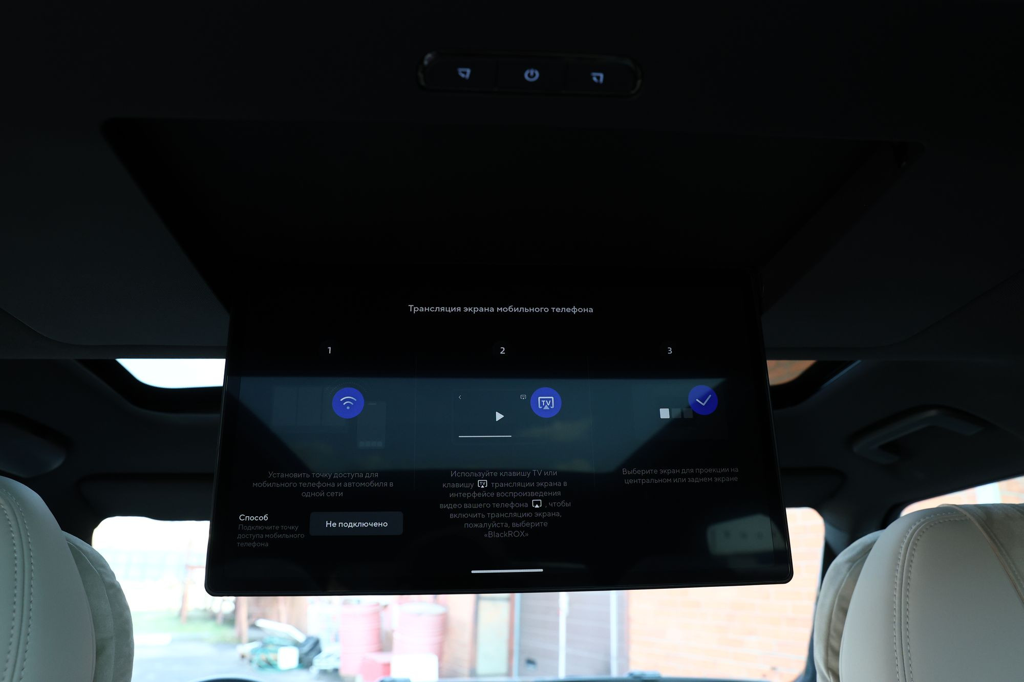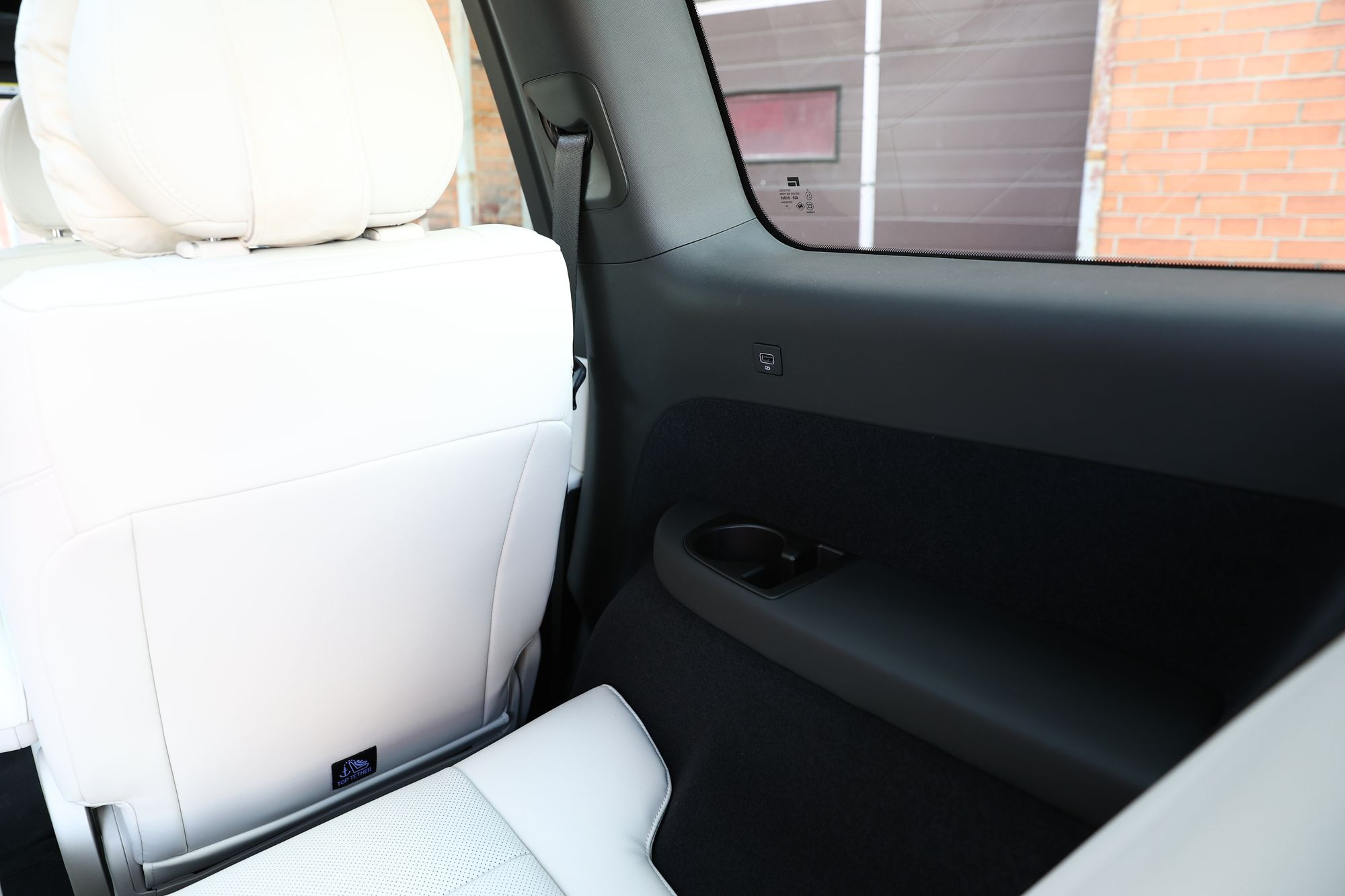 Компоновка салона у Rox 01 может быть различной. Она всегда будет трехрядной, но посадочная формула в версии Business Lounge Edition имеет вид 2+2+2, а в версии Family Edition – 2+2+3. То есть, второй ряд в любом случае раздельный, а вот третий может быть как двухместным, так и трёхместным. У «бизнеса» средний ряд более продвинутый, с массивными креслами, как в люксовых минивэнах, с широкими стационарными подлокотниками и выдвижными оттоманками. Family довольствуется сиденьями попроще. Они не такие крупные, а подлокотник у них только внутренний. Ещё в этом случае отсутствует вентиляция, хотя есть и подогрев, и даже массаж. Но главное – между креслами можно спокойно пройти на третий ряд. Насколько комфортно там можно разместиться, зависит от благосклонности пассажиров второго ряда и их готовности делиться личным пространством, но диванчик в любом случае плоский и установлен очень низко, чтобы при желании его можно было сложить под пол. Тоже, кстати, вручную. У нас на тесте побывал как раз «семейный» вариант.