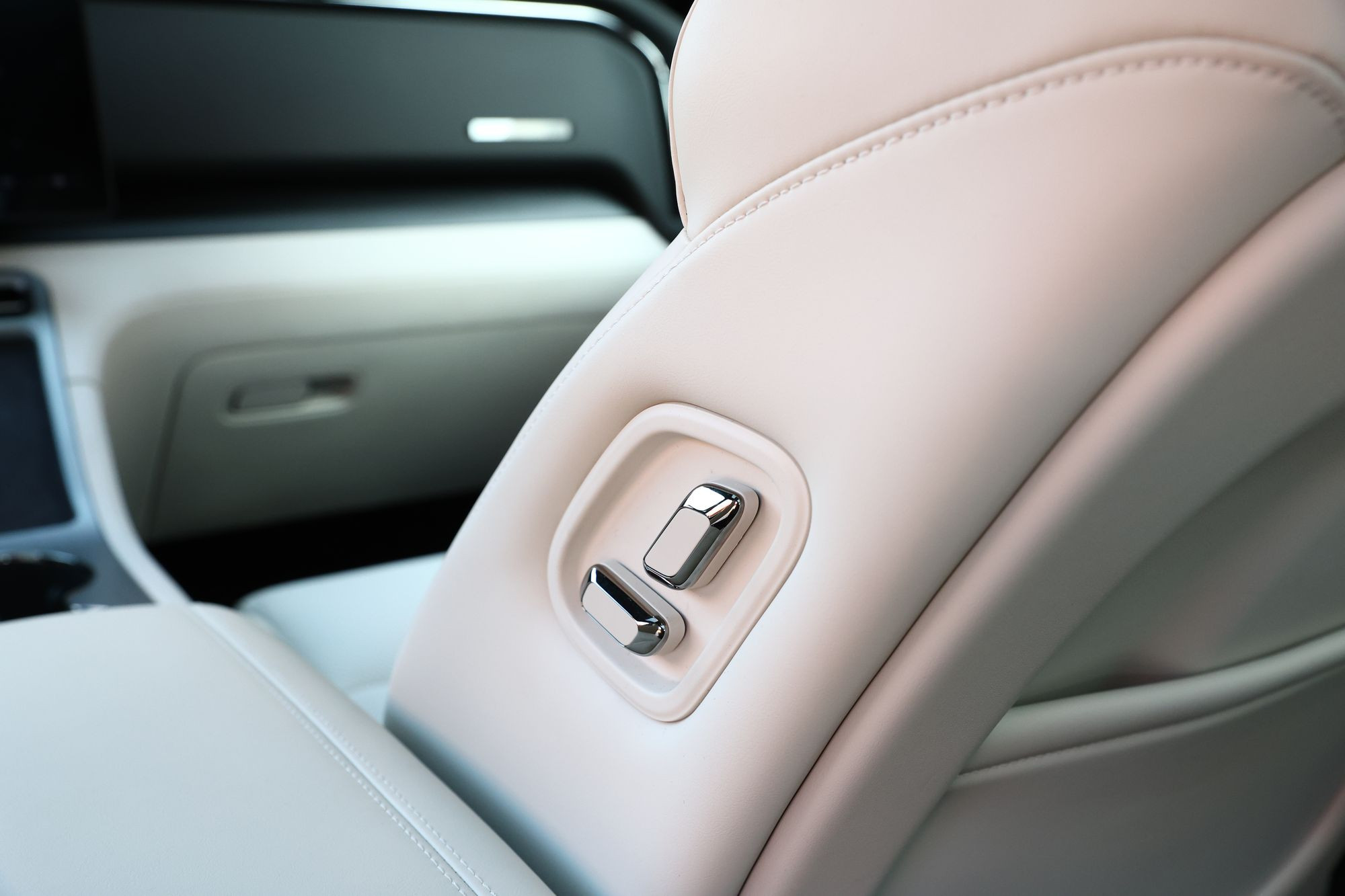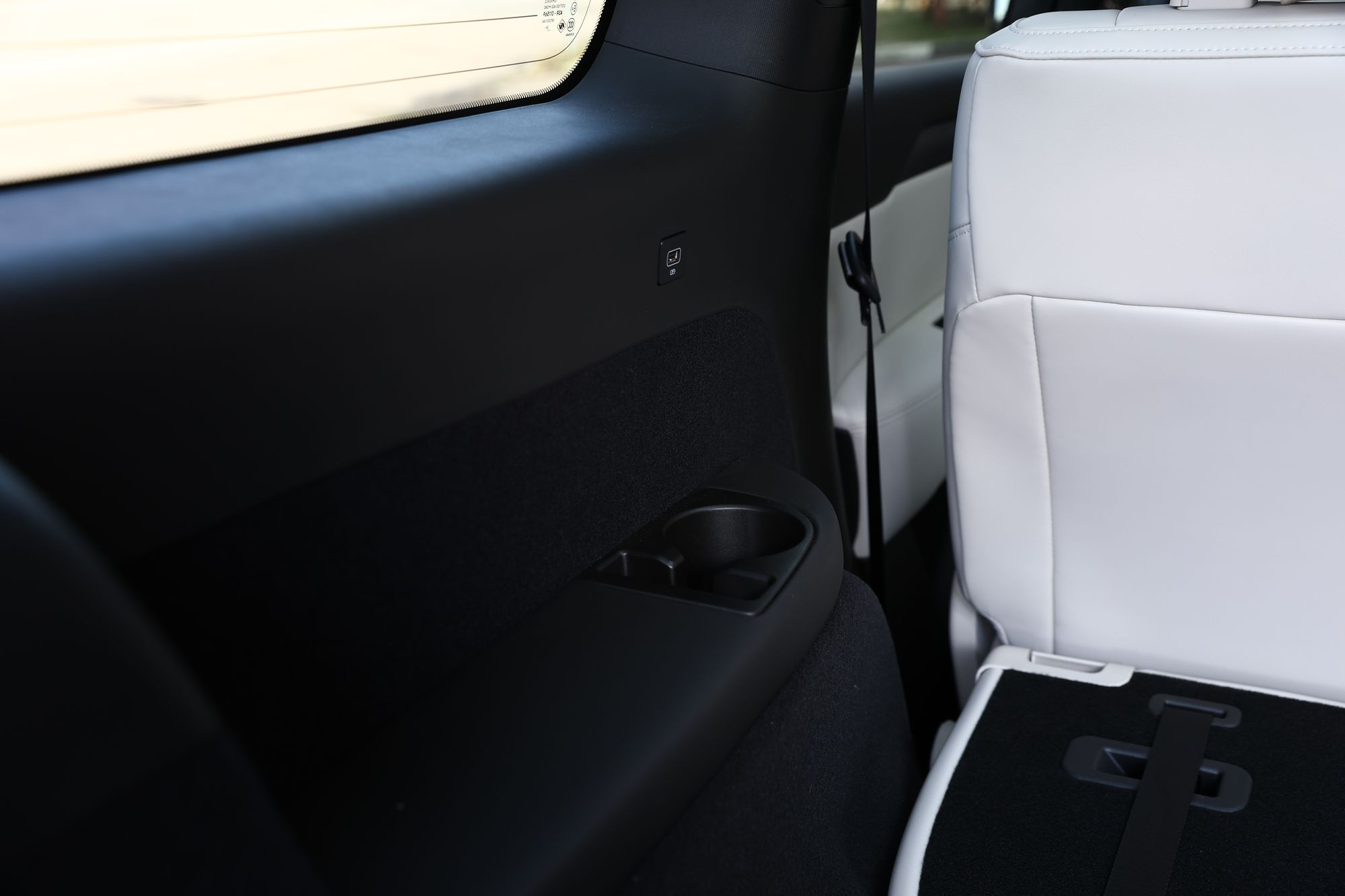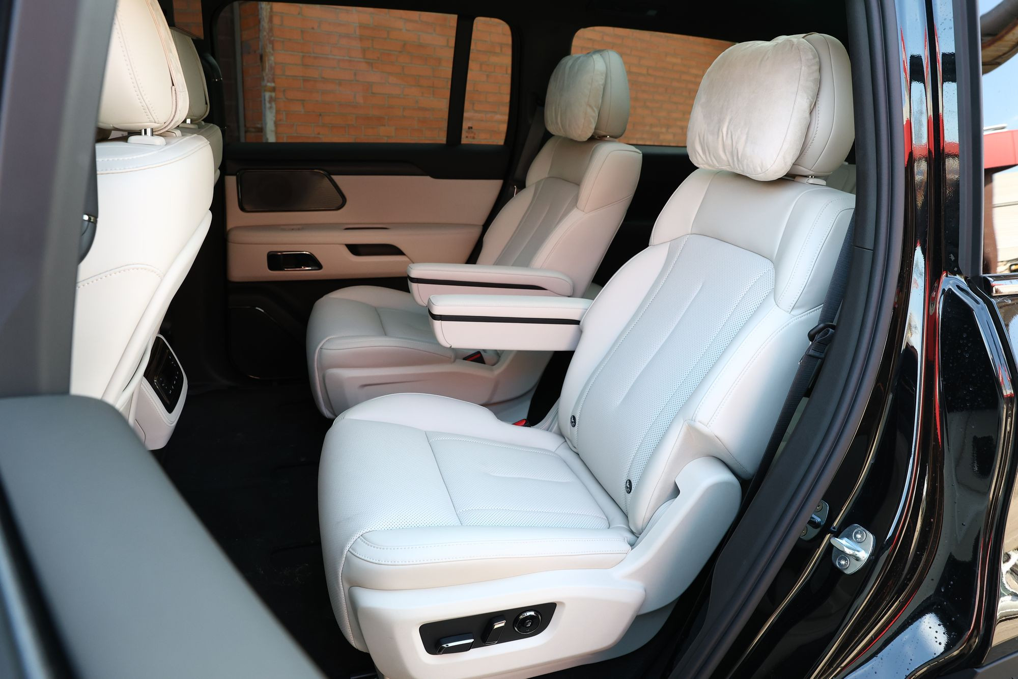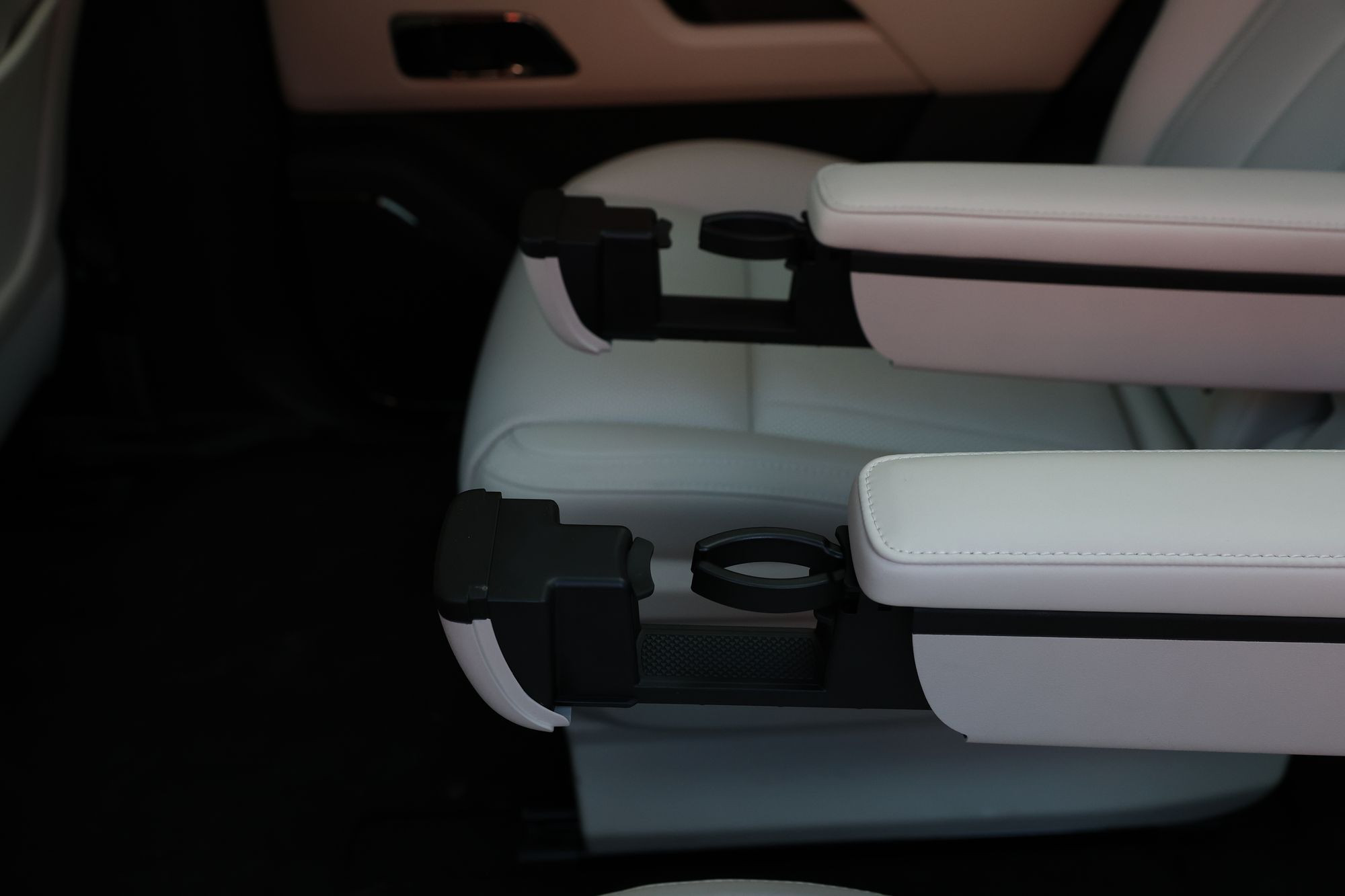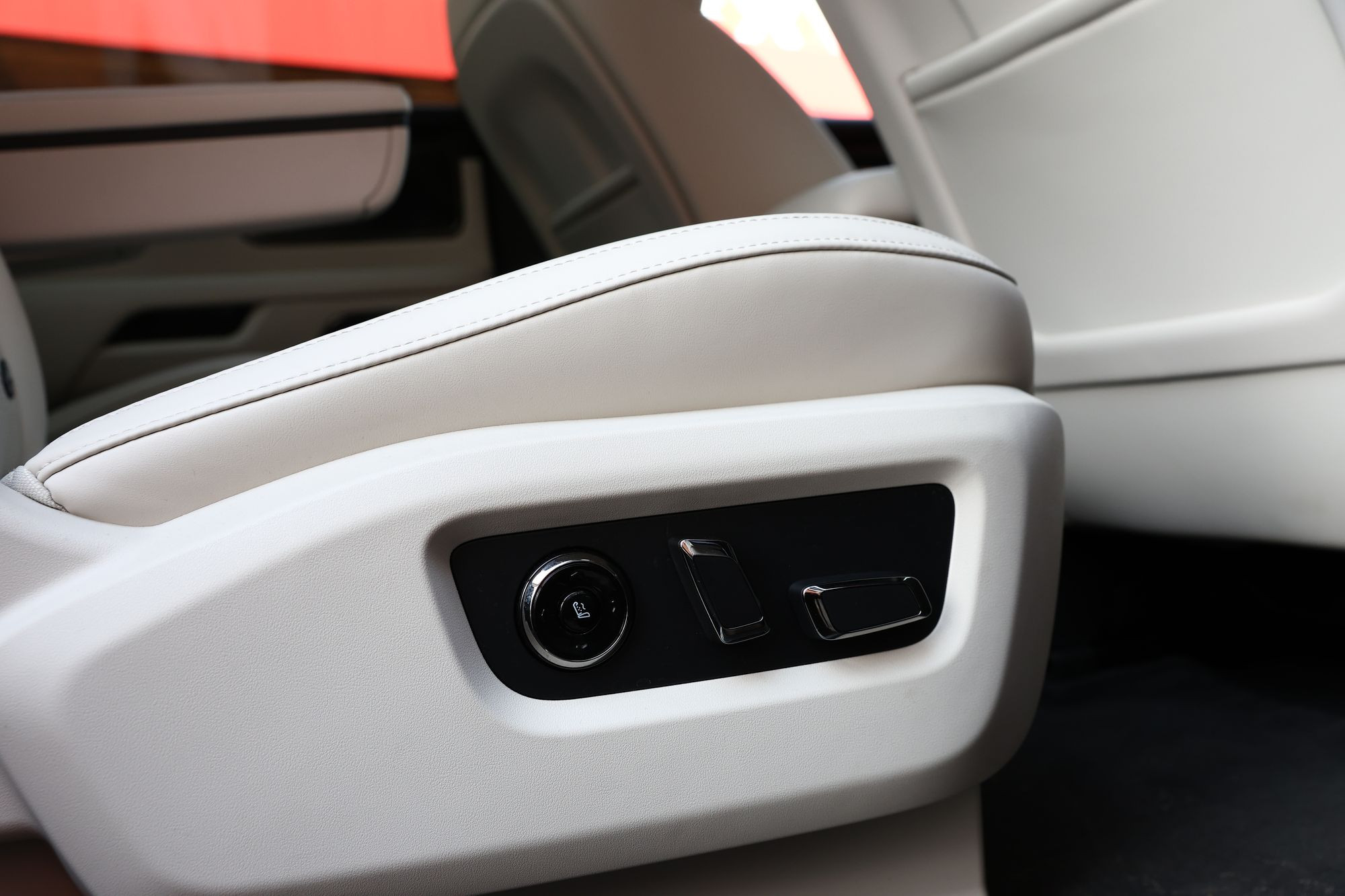 Компоновка салона у Rox 01 может быть различной. Она всегда будет трехрядной, но посадочная формула в версии Business Lounge Edition имеет вид 2+2+2, а в версии Family Edition – 2+2+3. То есть, второй ряд в любом случае раздельный, а вот третий может быть как двухместным, так и трёхместным. У «бизнеса» средний ряд более продвинутый, с массивными креслами, как в люксовых минивэнах, с широкими стационарными подлокотниками и выдвижными оттоманками. Family довольствуется сиденьями попроще. Они не такие крупные, а подлокотник у них только внутренний. Ещё в этом случае отсутствует вентиляция, хотя есть и подогрев, и даже массаж. Но главное – между креслами можно спокойно пройти на третий ряд. Насколько комфортно там можно разместиться, зависит от благосклонности пассажиров второго ряда и их готовности делиться личным пространством, но диванчик в любом случае плоский и установлен очень низко, чтобы при желании его можно было сложить под пол. Тоже, кстати, вручную. У нас на тесте побывал как раз «семейный» вариант.