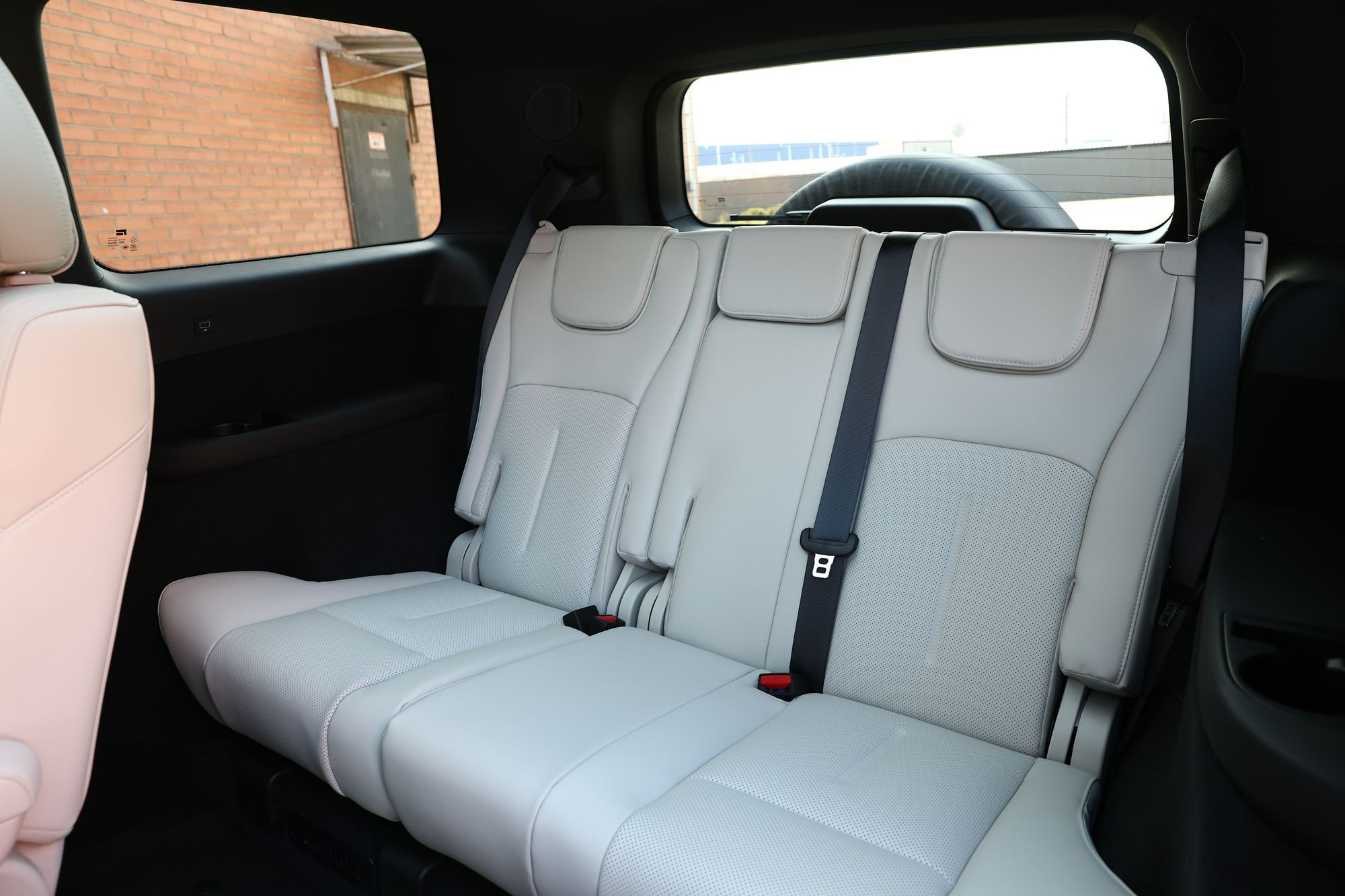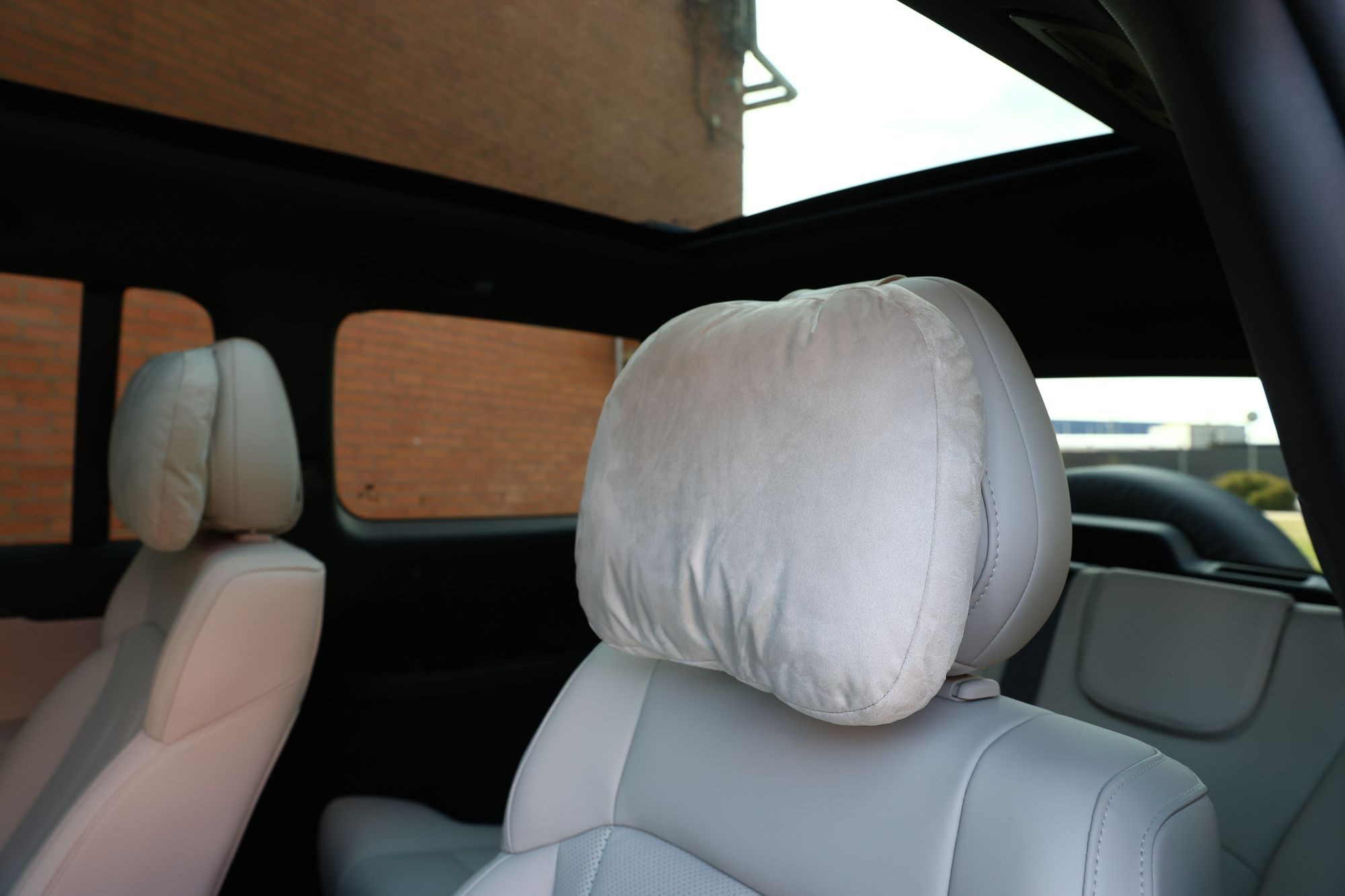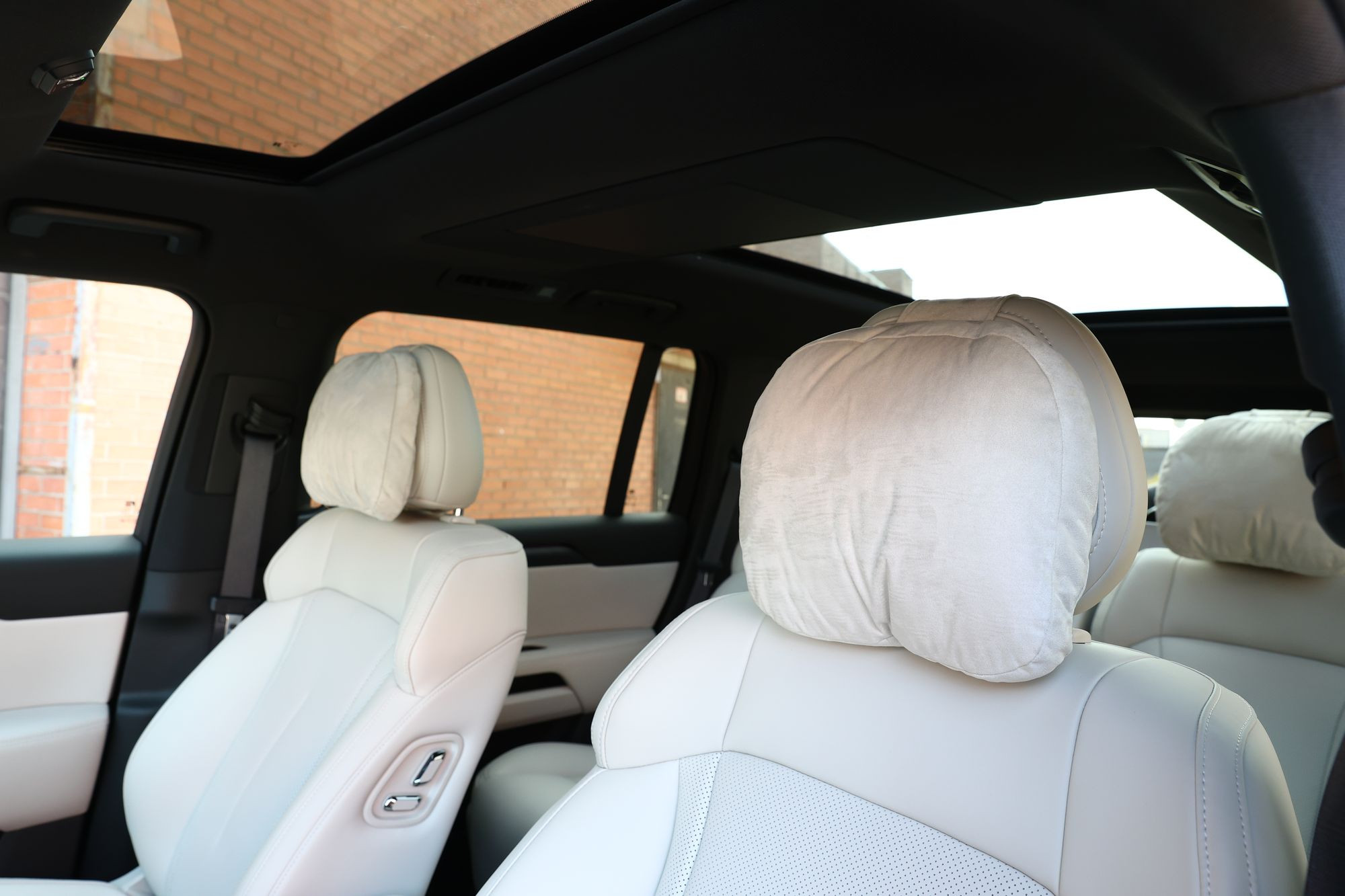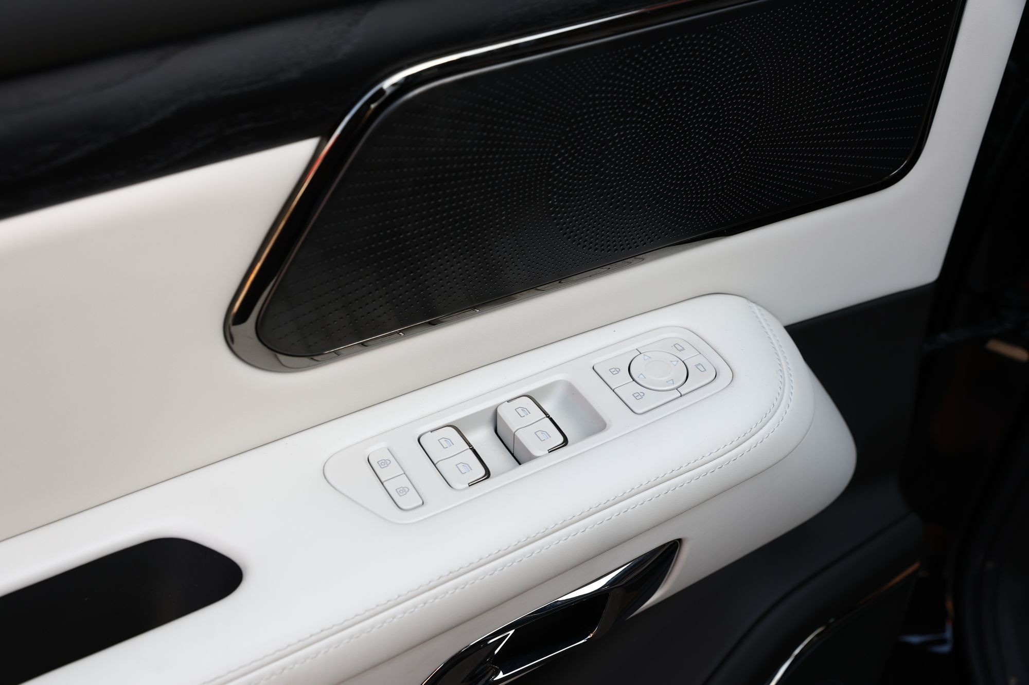 Компоновка салона у Rox 01 может быть различной. Она всегда будет трехрядной, но посадочная формула в версии Business Lounge Edition имеет вид 2+2+2, а в версии Family Edition – 2+2+3. То есть, второй ряд в любом случае раздельный, а вот третий может быть как двухместным, так и трёхместным. У «бизнеса» средний ряд более продвинутый, с массивными креслами, как в люксовых минивэнах, с широкими стационарными подлокотниками и выдвижными оттоманками. Family довольствуется сиденьями попроще. Они не такие крупные, а подлокотник у них только внутренний. Ещё в этом случае отсутствует вентиляция, хотя есть и подогрев, и даже массаж. Но главное – между креслами можно спокойно пройти на третий ряд. Насколько комфортно там можно разместиться, зависит от благосклонности пассажиров второго ряда и их готовности делиться личным пространством, но диванчик в любом случае плоский и установлен очень низко, чтобы при желании его можно было сложить под пол. Тоже, кстати, вручную. У нас на тесте побывал как раз «семейный» вариант.