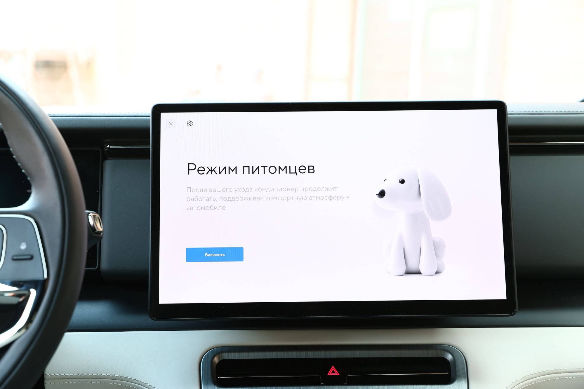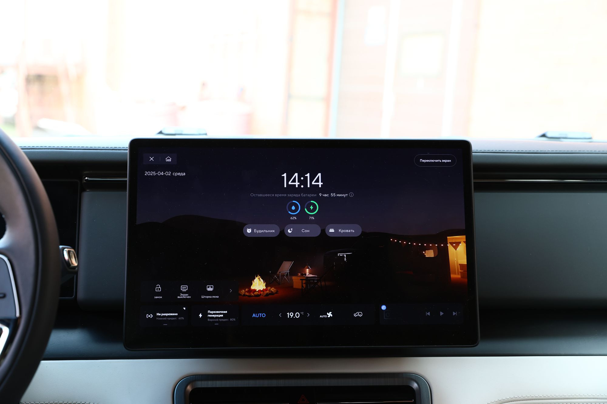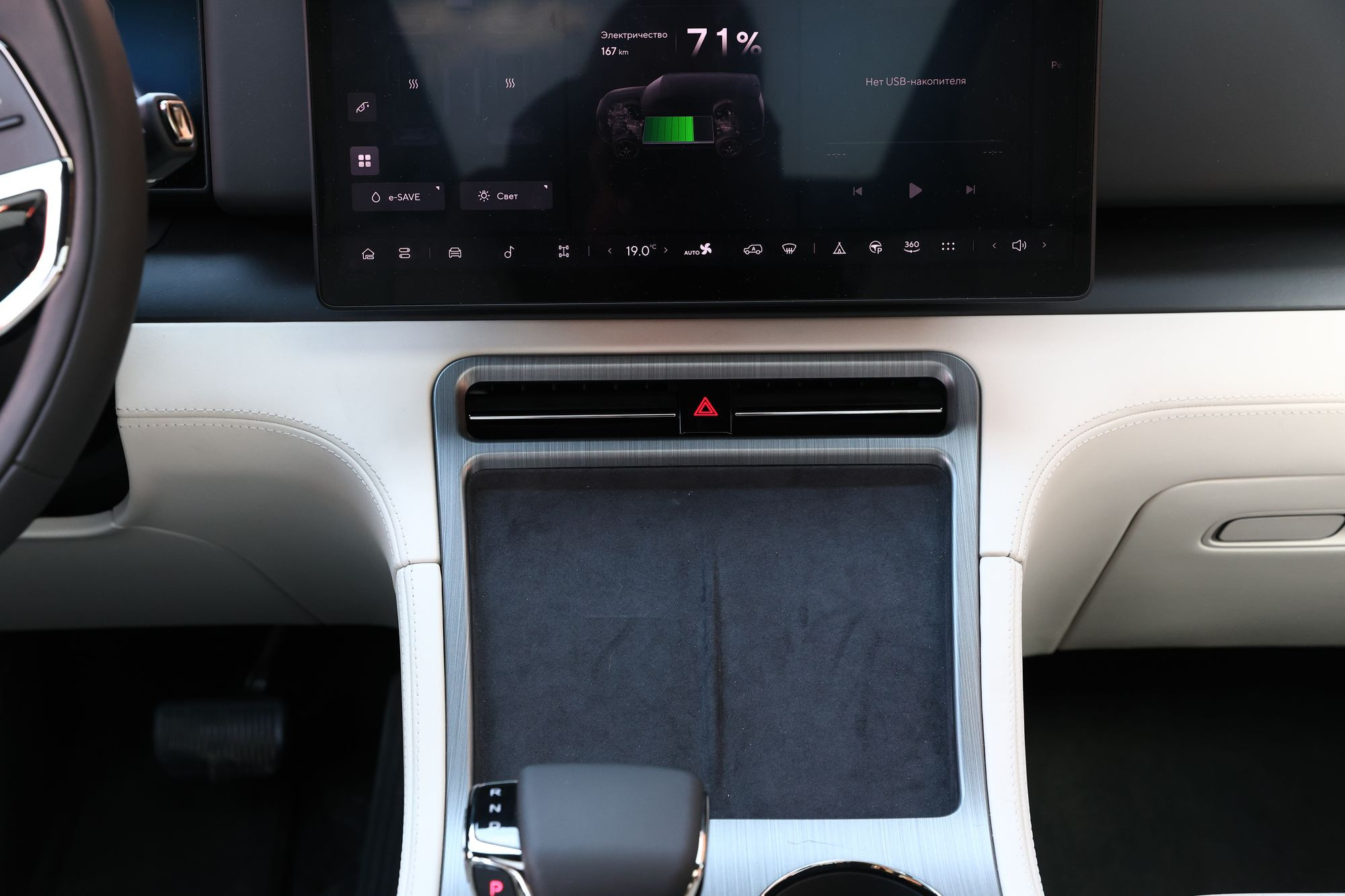 Дефлекторы климат-контроля регулируются тоже через сенсорный экран. Такое мы уже видели (и осуждали) на Aito Seres M5, и здесь то же самое. Остаётся довольствоваться авторежимом, причём в тишине отчётливо слышно жужжание сервоприводов заслонок, которые управляют направлением обдува. Зато тачскрин сам по себе очень хорош: у экрана отличная графика и быстродействие благодаря чипу Snapdragon 8155.