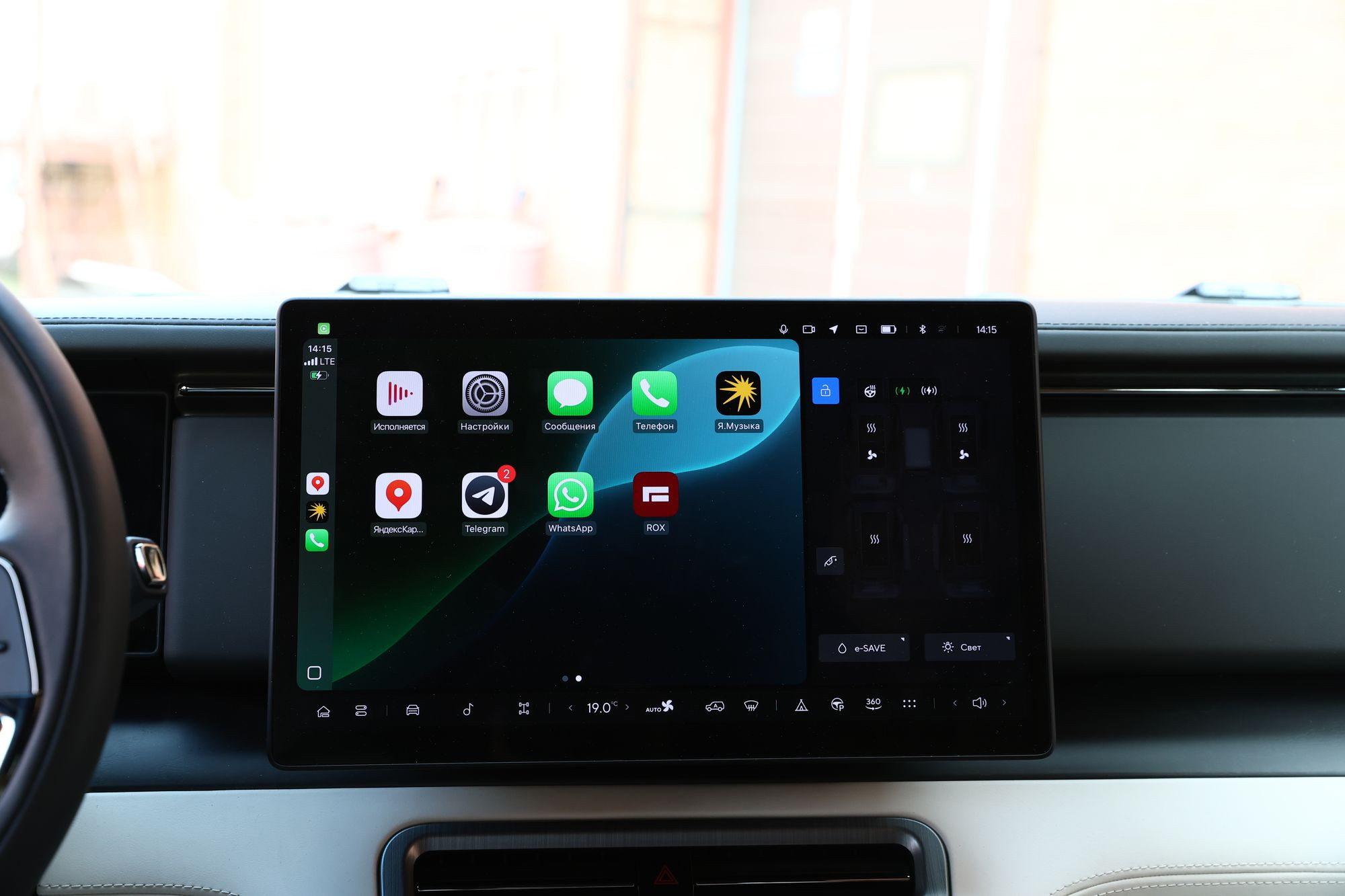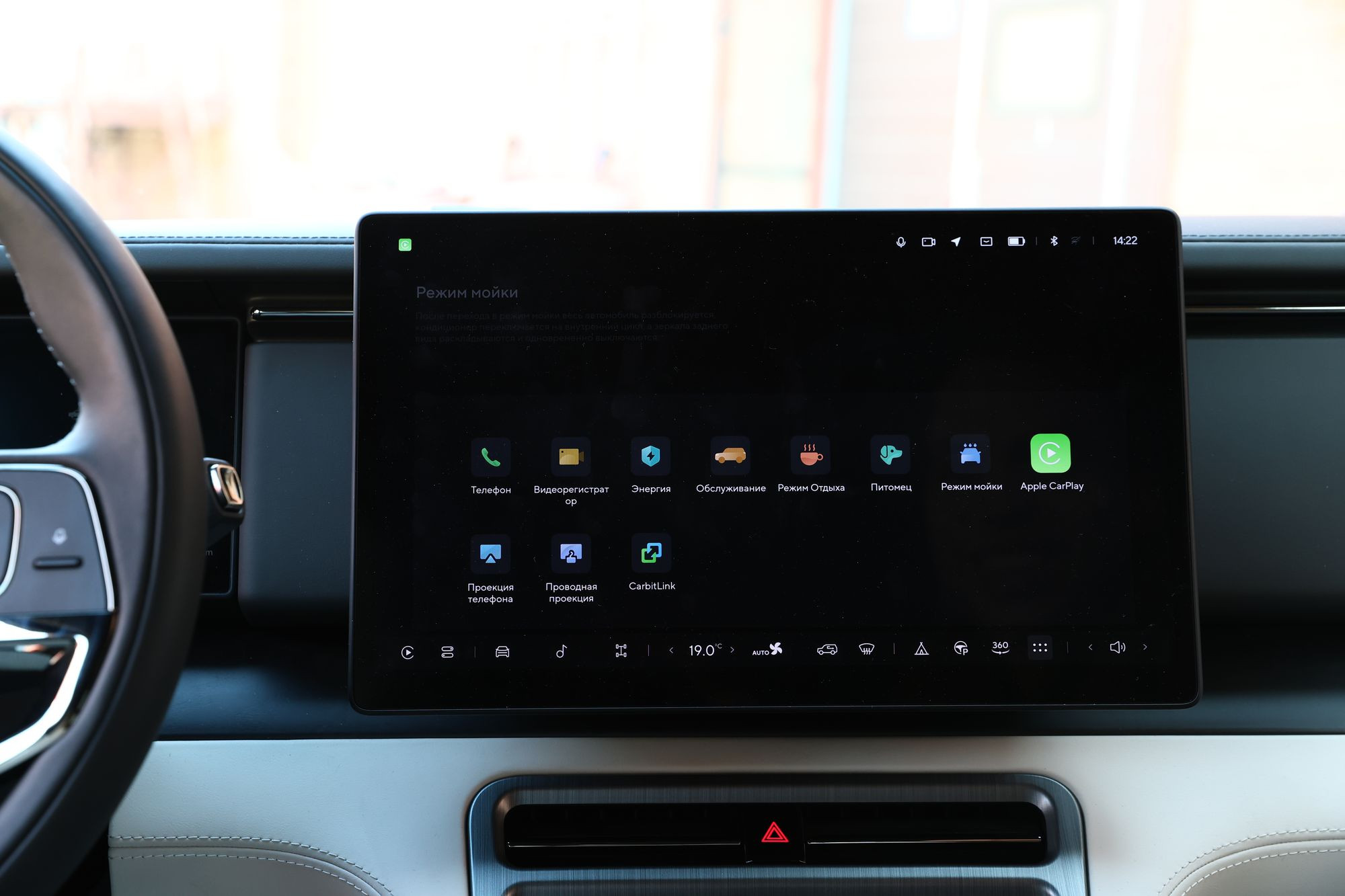 Даже перевод мультимедийной системы на русский язык в кои-то веки сделан на совесть! Ни досадных опечаток, ни странных сокращений – даже поиронизировать не над чем. Дожили. И наконец-то хоть кто-то додумался сделать так, чтобы на дисплее всегда оставалась активной полоска с иконками разделов меню даже в режиме Apple CarPlay. Это особенно актуально в силу того, что кнопка на панели только одна, и та – «аварийка».
