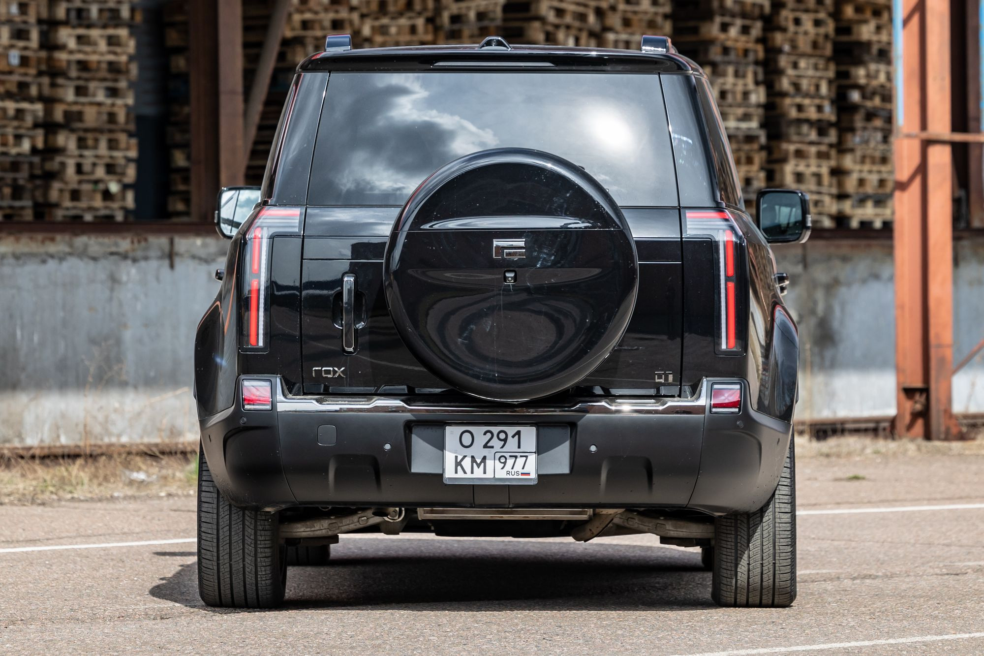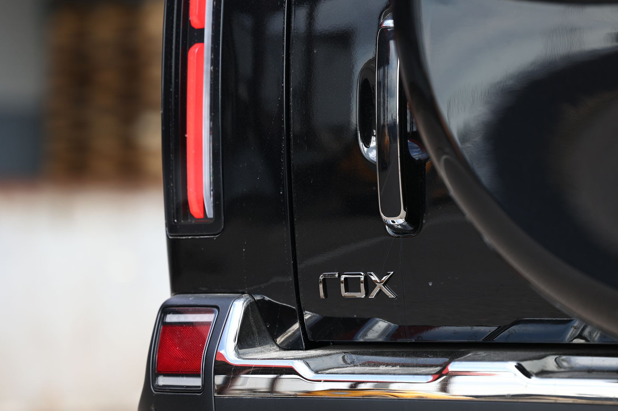 Забраться внутрь – задача тоже не особо простая. Подножек у Рокса нет, и дорожный просвет в 205 мм фиксированный, поскольку пневмоподвески тоже нет. Облегчить решение этой задачи призваны крупные ручки на стойках кузова. Ещё один вариант, правда, на любителя – установить выдвижные подножки, которые предлагают дилеры Rox. Автомобиль довольно крупный: 5295 мм с учётом запаски на багажной двери, и 5050 мм – без неё.
