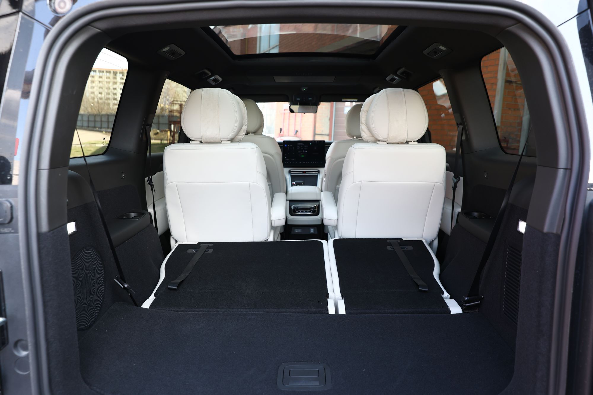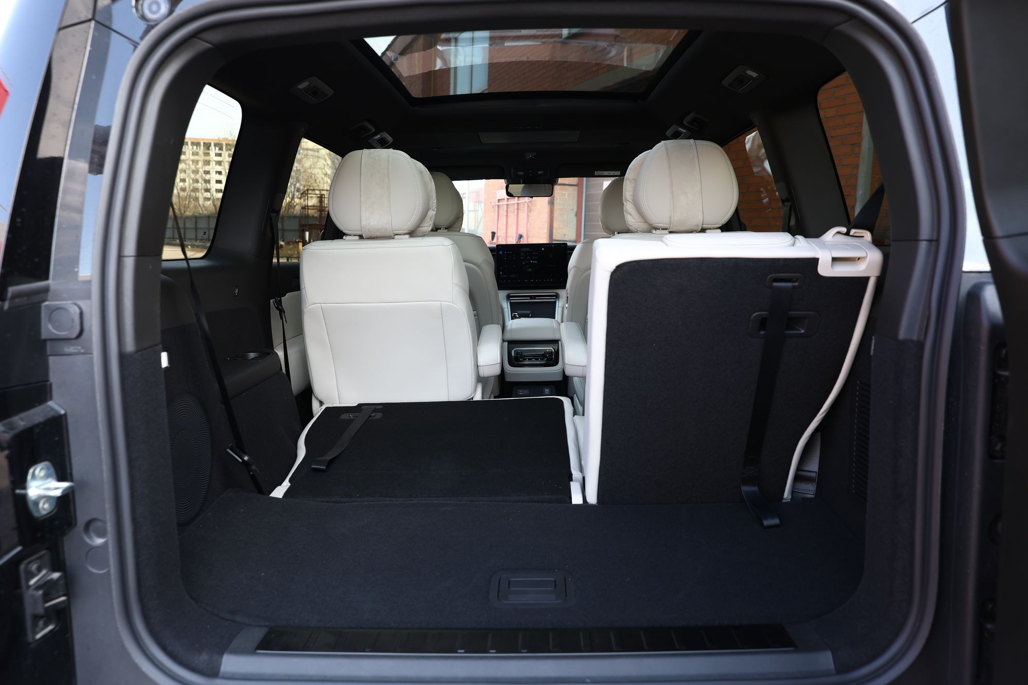 Заявленный объём багажника составляет 535 литров, но как получили эти цифры – решительно непонятно. На глаз тут в лучшем случае литров двести. Однако если сложить второй и третий ряды (у Business Lounge, к слову, складывается только последний), отсек увеличится до 2202 литров. Ровный пол, разумеется, можно получить только на третьем ряду. Со сложенным диваном кресла второго ряда назад до конца не отодвинуть – они упираются в его спинку.
