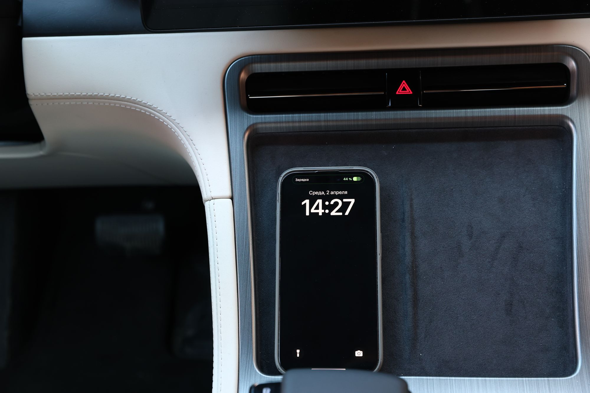 Зато беспроводных зарядок для смартфона целых две. Они отделаны замшей и расположены удачно – под наклоном на центральной консоли. Подстаканники было бы здорово закрыть шторкой, а на аккуратный джойстик управления режимами трансмиссии удобно класть руку. И это придётся делать поневоле, поскольку у руля очень неудобные спицы – слишком широкие, а вдобавок ещё и двойные. Подобрать удобный хват из-за этого очень сложно, а кроме того, сэкономили на электрорегулировках рулевой колонки, которую нужно двигать вручную.