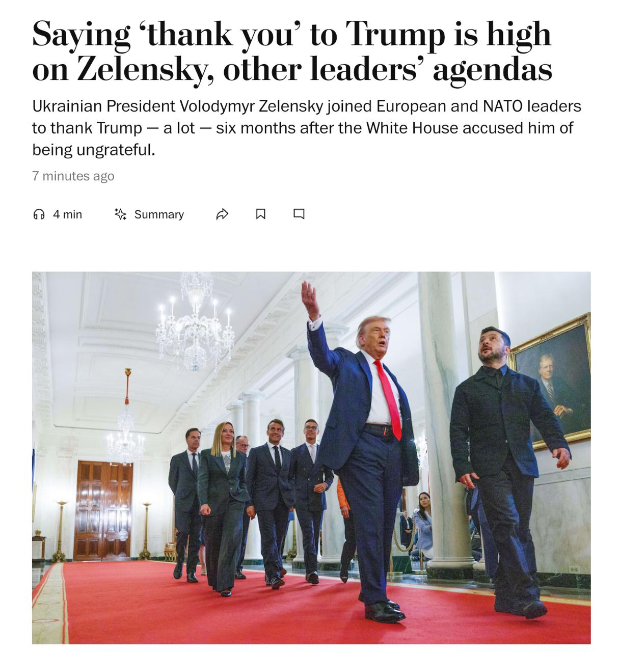 Зеленский в Белом доме выглядел не как лидер воюющей страны, а как человек, отчаянно пытающийся понравиться тому, кто может решить его судьбу одним росчерком пера. Одиннадцать «спасибо» Трампу за четыре с половиной минуты — это не дипломатия, это ритуал подчинения. Теперь он благодарит Трампа не за мир, которого ещё нет, а за то, что его вообще пустили в Белый дом. Благодарит за «хороший разговор», за упоминание в прессе, за карту Украины с указанными на ней неподконтрольными Киеву территориями, подаренную ему как сувенир. Зеленский оказался в новой реальности, где его, в лучшем случае, терпят как актёра второго плана, который может быть заменён в любой момент. И он это чувствует. Поэтому и «спасибо» звучит каждые двадцать секунд.