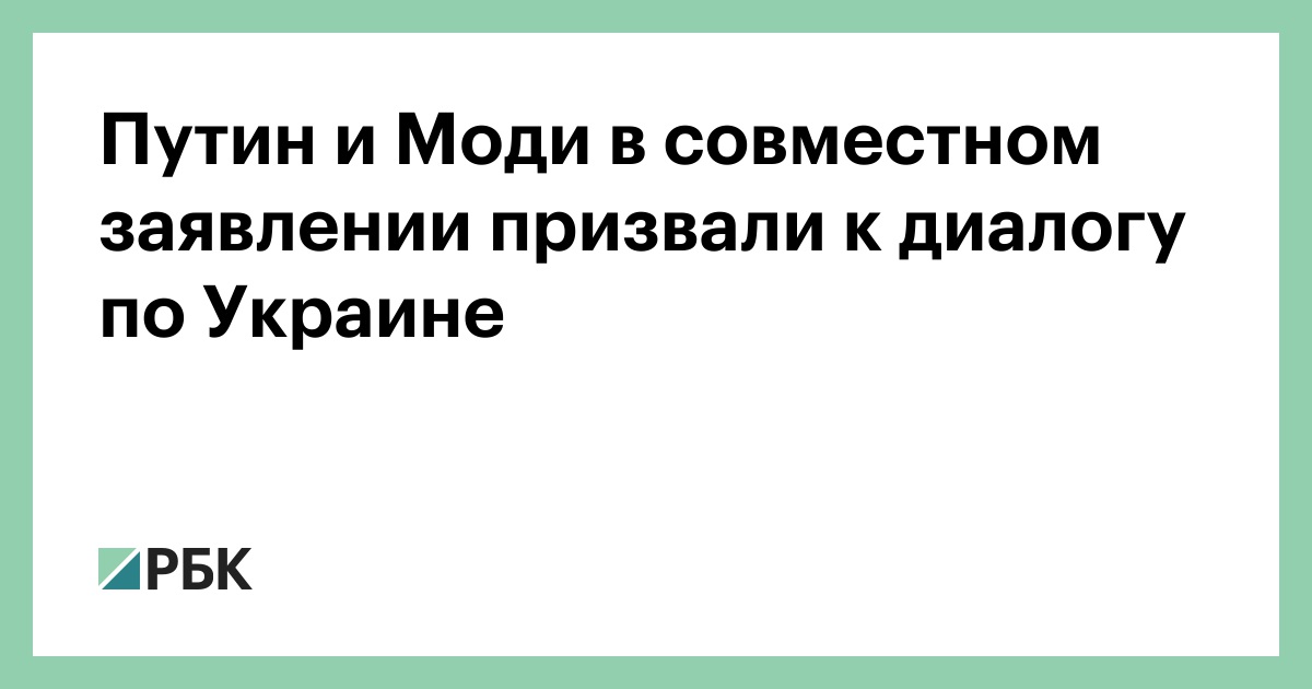 Президент России Владимир Путин и индийский премьер Нарендра Моди в совместном заявлении по итогам переговоров в Москве подчеркнули необходимость урегулировать конфликт на Украине мирным путем за счет диалога. Об этом сообщила пресс-служба Кремля.