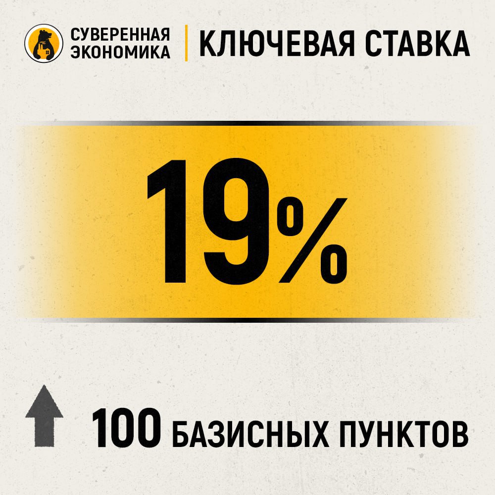 ⚡️ЦБ повысил ключевую ставку до 19% Банк России решил продолжить политику ужесточения ДКП. Притом ставка повышена на 100 б.п., хотя некоторые аналитики прогнозировали более радикальные шаги. Но это не исключает дальнейшего ужесточения. По всей видимости регулятор не планирует менять подход и хочет додавить инфляцию любой ценой. Эффективность таких мер пока остается под вопросом.