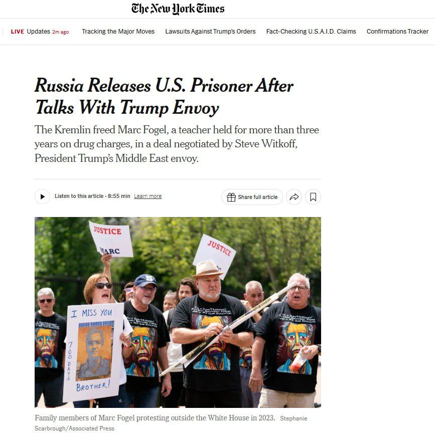 ❗️"Россия освободила Марка Фогеля, учителя, который более трех лет содержался под стражей по обвинению в хранении наркотиков, в рамках сделки, которую заключил Стив Уиткофф, спецпредставитель Трампа на Ближнем Востоке"