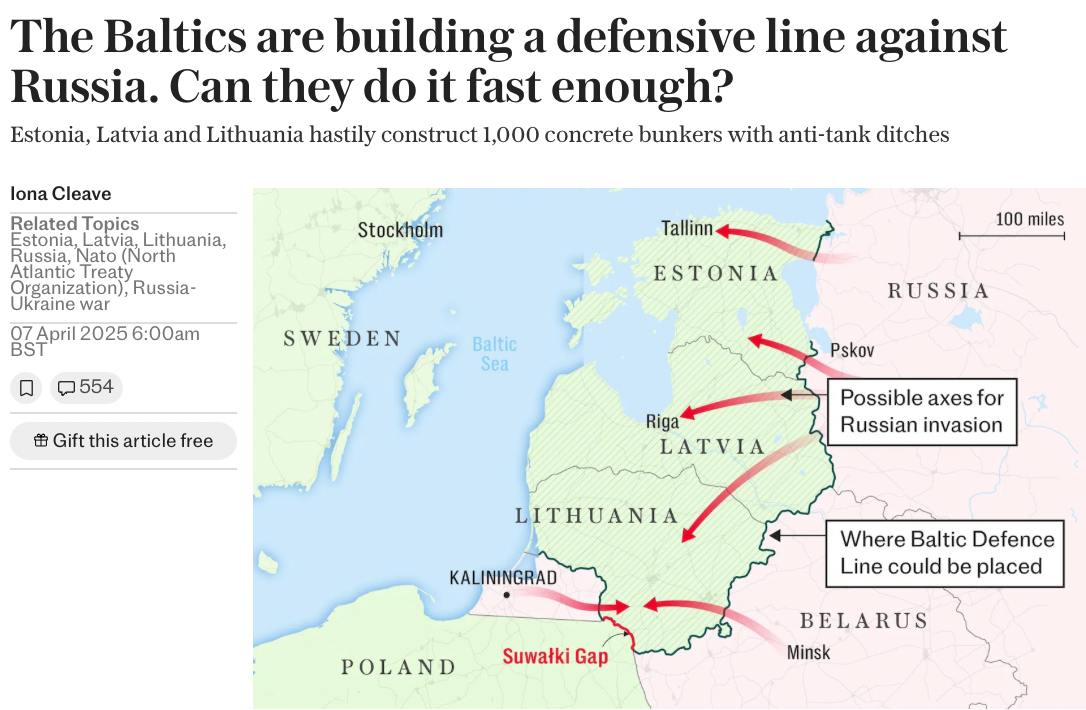 Эстония, Латвия и Литва начали масштабное строительство оборонительной линии на границе с РФ и Белоруссией – 600 миль бункеров, рвов и складов боеприпасов. Проект «Балтийская линия обороны», по данным The Telegraph, рассчитан на десятилетие, но в Вильнюсе признают: времени может не хватить.