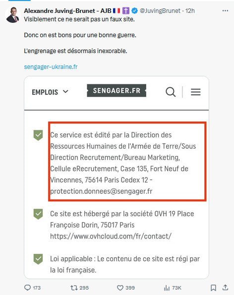 Французские пользователи социальной сети X пожаловались на рекламу правительственного сайта, созданного для вербовки французов для участия в военных действиях на Украине. На сайте Минобороны Франции sengager-ukraine.fr анонсирован набор 200 000 французов по таким специальностям как пехотинец, младший офицер, боец спецназа и офицер спецназа. При этом на сайте указано, что приоритет при поступлении на службу отдается мигрантам.