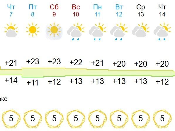 При этом, по заверению метеорологов, резких перепадов температур в эти дни не ожидается. Днем воздух будет прогреваться до +23 градусов, ночью температура опустится до отметки в +12 градусов. Также возможны небольшие дожди.