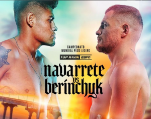 В ночь на 19 мая в Сан-Диего (США) пройдёт боксёрское шоу промоутерской компании Top Rank, главным событием которого станет поединок за вакантный титул чемпиона мира по версии WBO в лёгком весе (до 61,2 кг) между украинцем Денисом Беринчиком и мексиканцем Эмануэлем Наваррете.