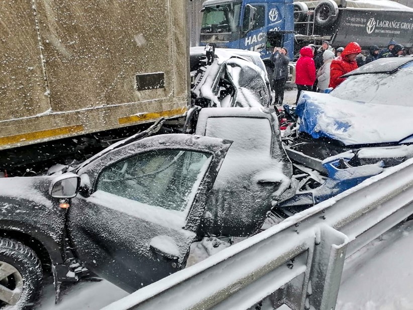 На фото: Последствия массового ДТП на трассе М-11 под Новгородом, 26.03.23
